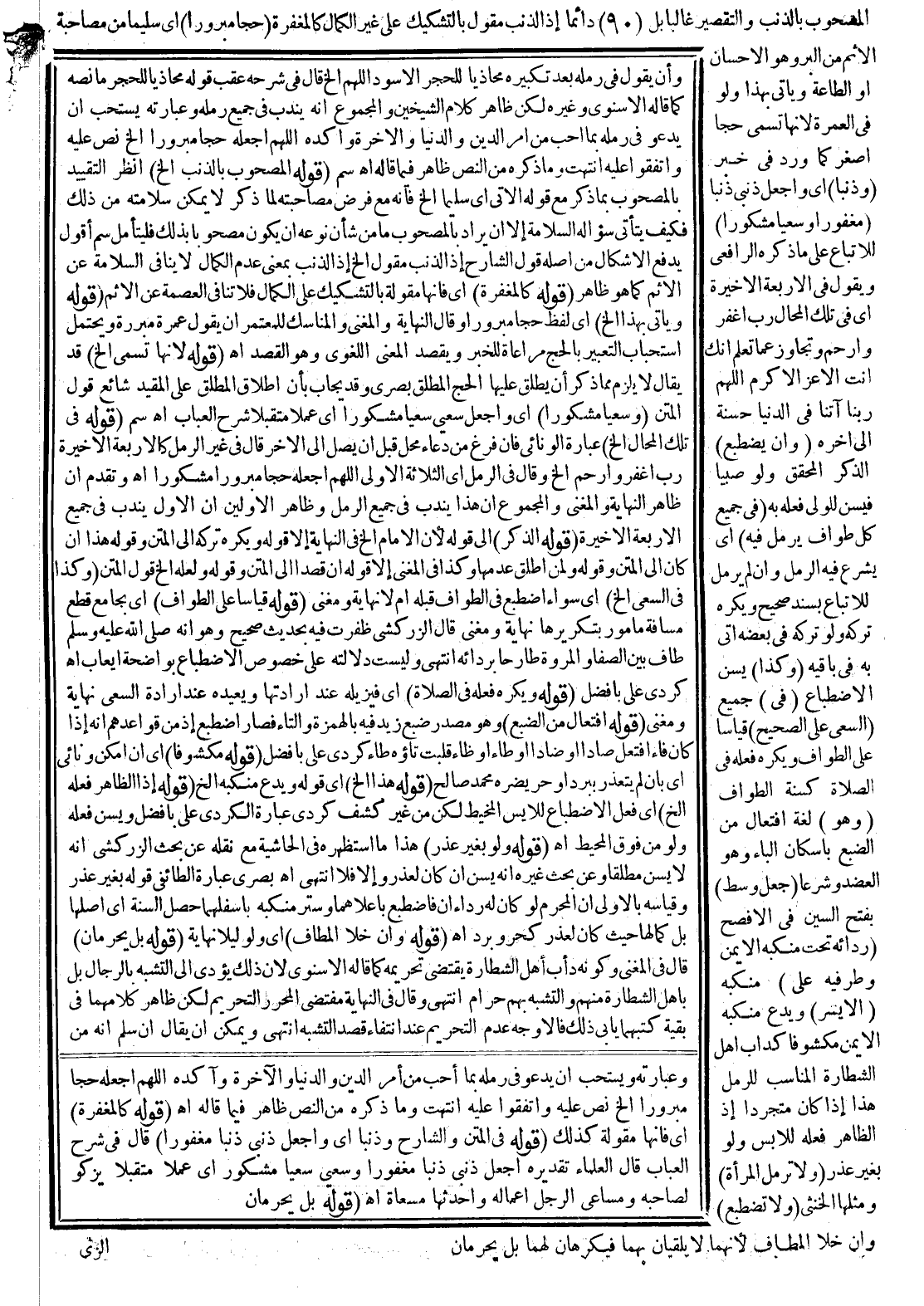 الْمَصْحُوبِ بِالذَّنْبِ وَالتَّقْصِيرِ غَالِبًا بَلْ دَائِمًا إذْ الذَّنْبُ مَقُولٌ بِالتَّشْكِيكِ عَلَى غَيْرِ الْكَمَالِ كَالْمَغْفِرَةِ (حَجًّا مَبْرُورًا) أَيْ سَلِيمًا مِنْ مُصَاحَبَةِ الْإِثْمِ، مِنْ الْبِرِّ وَهُوَ الْإِحْسَانُ أَوْ الطَّاعَةُ وَيَأْتِي بِهَذَا وَلَوْ فِي الْعُمْرَةِ؛ لِأَنَّهَا تُسَمَّى حَجًّا أَصْغَرَ كَمَا وَرَدَ فِي خَبَرٍ (وَذَنْبًا) أَيْ وَاجْعَلْ ذَنْبِي ذَنْبًا (مَغْفُورًا وَسَعْيًا مَشْكُورًا) لِلِاتِّبَاعِ عَلَى مَا ذَكَرَهُ الرَّافِعِيُّ وَيَقُولُ فِي الْأَرْبَعَةِ الْأَخِيرَةِ أَيْ فِي تِلْكَ الْمَحَالِّ رَبِّ اغْفِرْ وَارْحَمْ وَتَجَاوَزْ عَمَّا تَعْلَمُ إنَّكَ أَنْتَ الْأَعَزُّ الْأَكْرَمُ اللَّهُمَّ رَبَّنَا آتِنَا فِي الدُّنْيَا حَسَنَةً إلَى آخِرِهِ.