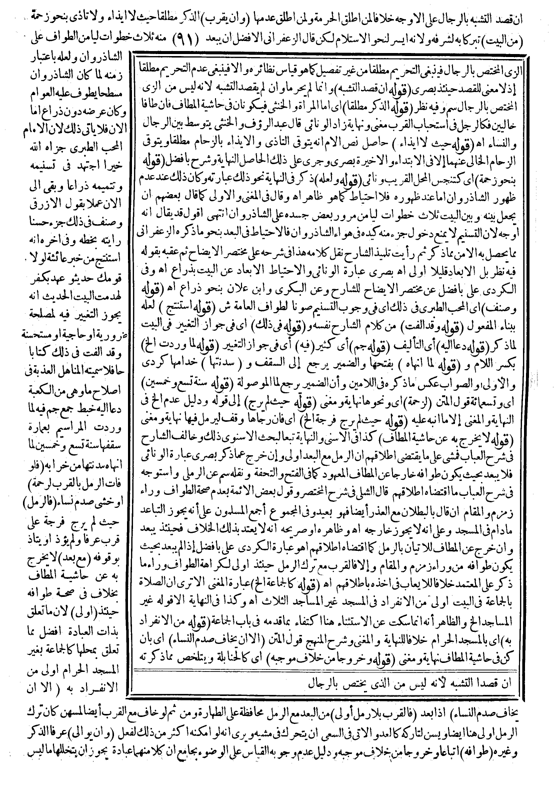وَفِي الْكُرْدِيِّ عَلَى بَافَضْلٍ عَنْ مُخْتَصَرِ الْإِيضَاحِ لِلشَّارِحِ وَعَنْ الْبَكْرِيِّ وَابْنِ عَلَّانَ بِنَحْوِ ذِرَاعٍ اهـ.