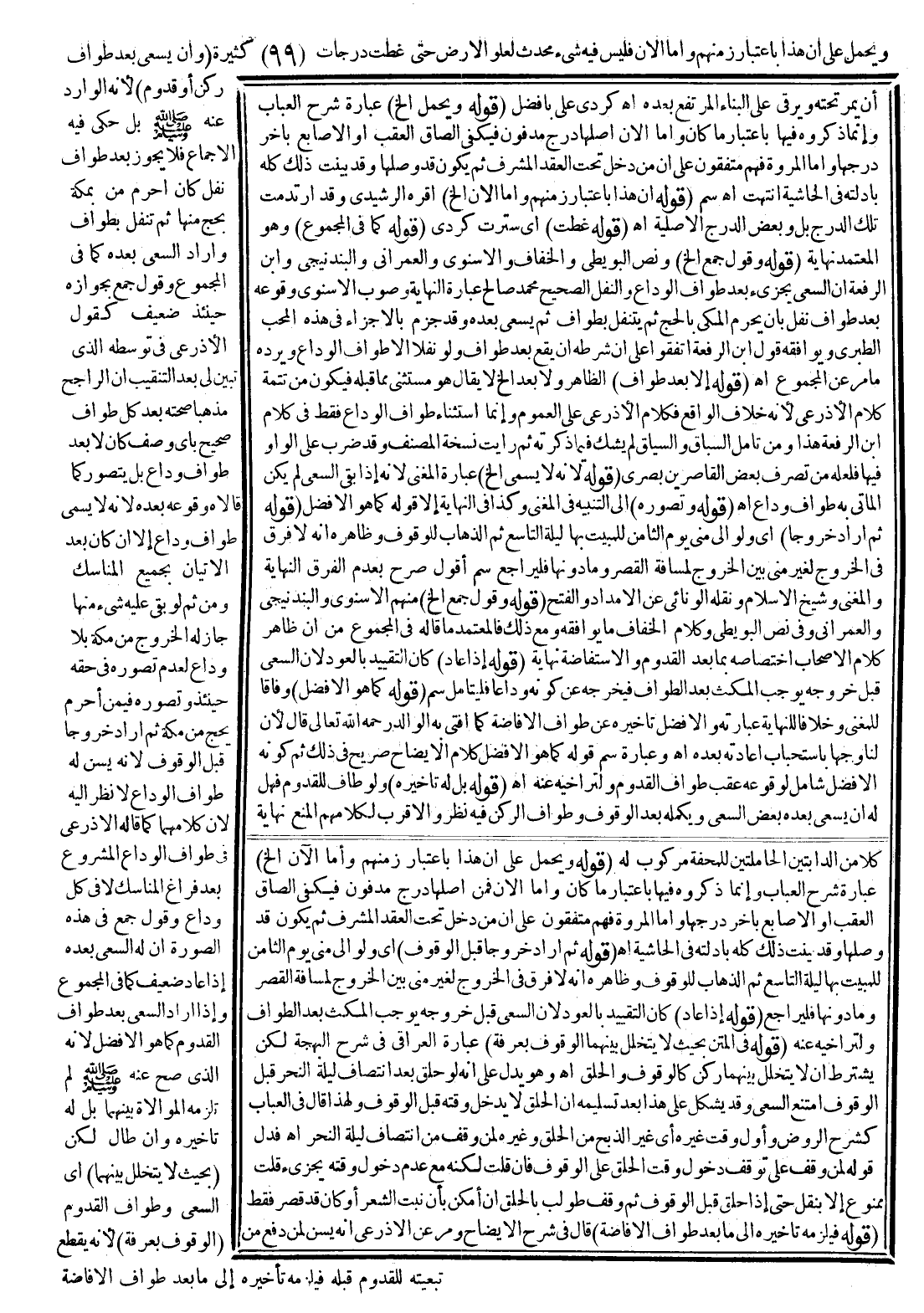 (قَوْلُهُ: وَتَصَوَّرَهُ) إلَى التَّنْبِيهِ فِي الْمُغْنِي وَكَذَا فِي النِّهَايَةِ إلَّا قَوْلَهُ كَمَا هُوَ الْأَفْضَلُ (قَوْلُهُ: ثُمَّ أَرَادَ خُرُوجًا إلَخْ) أَيْ وَلَوْ إلَى مِنًى يَوْمِ الثَّامِنِ لِلْمَبِيتِ بِهَا لَيْلَةَ التَّاسِعِ ثُمَّ الذَّهَابُ لِلْوُقُوفِ وَظَاهِرُهُ أَنَّهُ لَا فَرْقَ فِي الْخُرُوجِ لِغَيْرِ مِنًى بَيْنَ الْخُرُوجِ لِمَسَافَةِ الْقَصْرِ وَمَا دُونَهَا فَلْيُرَاجَعْ سم. أَقُولُ صَرَّحَ بِعَدَمِ الْفَرْقِ النِّهَايَةُ وَالْمُغْنِي وَشَيْخُ الْإِسْلَامِ وَنَقَلَهُ الْوَنَائِيُّ عَنْ الْإِمْدَادِ وَالْفَتْحِ (قَوْلُهُ: وَقَوْلُ جَمْعٍ إلَخْ) مِنْهُمْ الْإِسْنَوِيُّ وَالْبَنْدَنِيجِيّ وَالْعِمْرَانِيُّ وَفِي نَصِّ الْبُوَيْطِيِّ وَكَلَامِ الْخَفَّافِ مَا يُوَافِقُهُ وَمَعَ ذَلِكَ فَالْمُعْتَمَدُ مَا قَالَهُ فِي الْمَجْمُوعِ مِنْ أَنَّ ظَاهِرَ كَلَامِ الْأَصْحَابِ اخْتِصَاصُهُ بِمَا بَعْدَ الْقُدُومِ وَالِاسْتِفَاضَةِ نِهَايَةٌ (قَوْلُهُ: إذَا عَادَ) كَانَ التَّقْيِيدُ بِالْعَوْدِ؛ لِأَنَّ السَّعْيَ قَبْلَ خُرُوجِهِ يُوجِبُ الْمُكْثَ بَعْدَ الطَّوَافِ فَيُخْرِجُهُ عَنْ كَوْنِهِ وَدَاعًا فَلْيُتَأَمَّلْ سم. (قَوْلُهُ: كَمَا هُوَ الْأَفْضَلُ) وِفَاقًا لِلْمُغْنِي وَخِلَافًا لِلنِّهَايَةِ عِبَارَتُهُ وَالْأَفْضَلُ تَأْخِيرُهُ عَنْ طَوَافِ الْإِفَاضَةِ كَمَا أَفْتَى بِهِ الْوَالِدُ - رَحِمَهُ اللَّهُ تَعَالَى - قَالَ؛ لِأَنَّ لَنَا وَجْهًا بِاسْتِحْبَابِ إعَادَتِهِ بَعْدَهُ. اهـ. وَعِبَارَةُ سم قَوْلُهُ كَمَا هُوَ الْأَفْضَلُ كَلَامُ الْإِيضَاحِ صَرِيحٌ فِي ذَلِكَ ثُمَّ كَوْنُهُ الْأَفْضَلَ شَامِلٌ لِوُقُوعِهِ عَقِبَ طَوَافِ الْقُدُومِ وَلِتَرَاخِيهِ عَنْهُ اهـ.