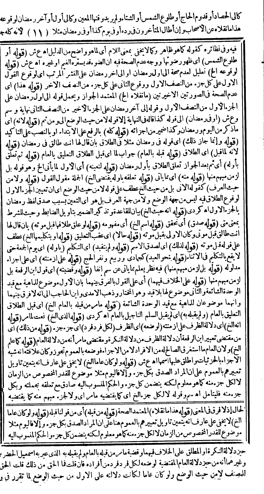 كَإِلَى الْحَصَادِ أَوْ قُدُومِ الْحَاجِّ أَوْ طُلُوعِ الشَّمْسِ أَوْ الشِّتَاءِ وَلَمْ يُرِيدَا وَقْتَهَا الْمُعَيَّنَ وَكَإِلَى أَوَّلِ أَوْ آخِرِ رَمَضَانَ لِوُقُوعِهِ عَلَى نِصْفِهِ الْأَوَّلِ أَوْ الْآخِرِ كُلِّهِ. هَذَا مَا نَقَلَاهُ عَنْ الْأَصْحَابِ وَإِنْ أَطَالَ الْمُتَأَخِّرُونَ فِي رَدِّهِ أَوْ فِي يَوْمِ كَذَا أَوْ فِي رَمَضَانَ مَثَلًا لِأَنَّهُ كُلَّهُ جُعِلَ ظَرْفًا فَكَأَنَّهُمَا قَالَا مَحَلُّهُ جُزْءٌ مِنْ أَجْزَائِهِ وَهُوَ مَجْهُولٌ وَإِنَّمَا جَازَ ذَلِكَ فِي الطَّلَاقِ؛ لِأَنَّهُ لَمَّا قَبِلَ التَّعْلِيقَ بِالْمَجْهُولِ كَقُدُومِ زَيْدٍ قَبِلَهُ بِالْعَامِّ ثُمَّ تَعَلَّقَ بِأَوَّلِهِ لِتَعَيُّنِهِ لِلْوُقُوعِ فِيهِ لَا مِنْ حَيْثُ الْوَضْعُ أَيْ لِمَا يَأْتِي فِي وَضْعِ الظَّرْفِ الْمَعْلُومِ مِنْهُ رُدَّ قَوْلُ غَيْرِ وَاحِدٍ وَإِنْ اسْتَحْسَنَهُ الرَّافِعِيُّ. تَعَلُّقُهُ بِأَوَّلِهِ يَقْتَضِي أَنَّ الْإِطْلَاقَ يَقْتَضِيهِ أَيْ وَحْدَهُ وَضْعًا وَلَا مِنْ حَيْثُ الْعُرْفُ؛ لِأَنَّهُ يَقْتَضِي صِدْقَ الظَّرْفِ عَلَى جَمِيعِ أَزْمِنَتِهِ صِدْقًا وَاحِدًا بَلْ مِنْ حَيْثُ صِدْقُ الِاسْمِ بِهِ كَمَا هُوَ الْقَاعِدَةُ فِي التَّعْلِيقِ بِالصِّفَاتِ أَنَّهُ حَيْثُ صَدَقَ وُجُودُ اسْمِ الْمُعَلَّقِ بِهِ وَقَعَ الْمُعَلَّقُ وَمِنْ ثَمَّ لَوْ عَلَّقَ طَلَاقَهَا بِقَبْلِ مَوْتِهِ وَقَعَ حَالًّا لِصِدْقِ الِاسْمِ أَوْ بِتَكْلِيمِهَا لِزَيْدٍ فِي يَوْمِ الْجُمُعَةِ وَقَعَ بِتَكْلِيمِهَا لَهُ أَثْنَاءَ يَوْمِهَا لِذَلِكَ وَلَمْ يَتَقَيَّدْ بِأَوَّلِهِ وَأَمَّا السَّلَمُ فَلَمَّا لَمْ يَقْبَلْ التَّأْجِيلَ بِالْمَجْهُولِ لَمْ يَقْبَلْهُ بِالْعَامِّ وَإِنَّمَا قَبِلَهُ بِنَحْوِ الْعِيدِ لِأَنَّهُ وُضِعَ لِكُلٍّ مِنْ الْأَوَّلِ وَالثَّانِي بِعَيْنِهِ فَدَلَالَتُهُ عَلَى كُلٍّ مِنْهُمَا أَقْوَى مِنْ دَلَالَةِ الظَّرْفِ عَلَى أَزْمِنَتِهِ؛ لِأَنَّهُ لَمْ يُوضَعْ لِكُلٍّ مِنْهَا بِعَيْنِهِ بَلْ لِزَمَنٍ مُبْهَمٍ مِنْهَا كَذَا قَالَهُ ابْنُ الرِّفْعَةِ.