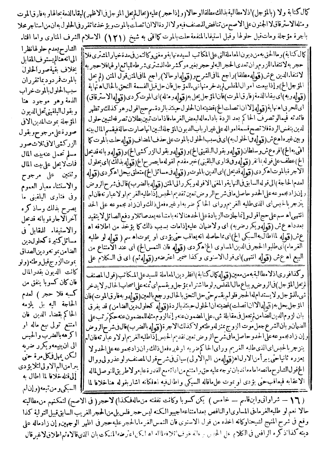 ـــــــــــــــــــــــــــــQكَمَالِ كِتَابَةٍ) وَمَا أُلْحِقَ بِهِ مِنْ دُيُونِ الْمُعَامَلَةِ الَّتِي عَلَى الْمُكَاتَبِ لِسَيِّدِهِ نِهَايَةٌ وَمُغْنِي وَكَالثَّمَنِ فِي مُدَّةِ خِيَارِ الْمُشْتَرِي فَلَا حَجْرَ بِهِ لِانْتِفَاءِ اللُّزُومِ وَإِنْ تَعَدَّى الْحَجْرُ إلَيْهِ لَوْ حُجِرَ بِغَيْرِهِ وَكَشَرْطِهِ لِلْمُشْتَرِي شَرْطُهُ لِلْبَائِعِ أَوْ لَهُمَا فَلَا حَجْرَ بِهِ لِانْتِفَاءِ الدَّيْنِ اهـ ع ش (قَوْلُهُ مُطْلَقًا) رَاجِعٌ لِمَا فِي الشَّرْحِ وَ (قَوْلُهُ أَوْ حَالًّا) رَاجِعٌ لِمَا فِي الْمَتْنِ قَوْلُ الْمَتْنِ (لَمْ يَحِلَّ الْمُؤَجَّلُ إلَخْ) وَإِذَا بِيعَتْ أَمْوَالُ الْمُفْلِسِ لَمْ يُدَّخَرْ مِنْهَا شَيْءٌ لِلْمُؤَجَّلِ فَإِنْ حَلَّ قَبْلَ الْقِسْمَةِ الْتَحَقَ بِالْحَالِّ اهـ نِهَايَةُ.