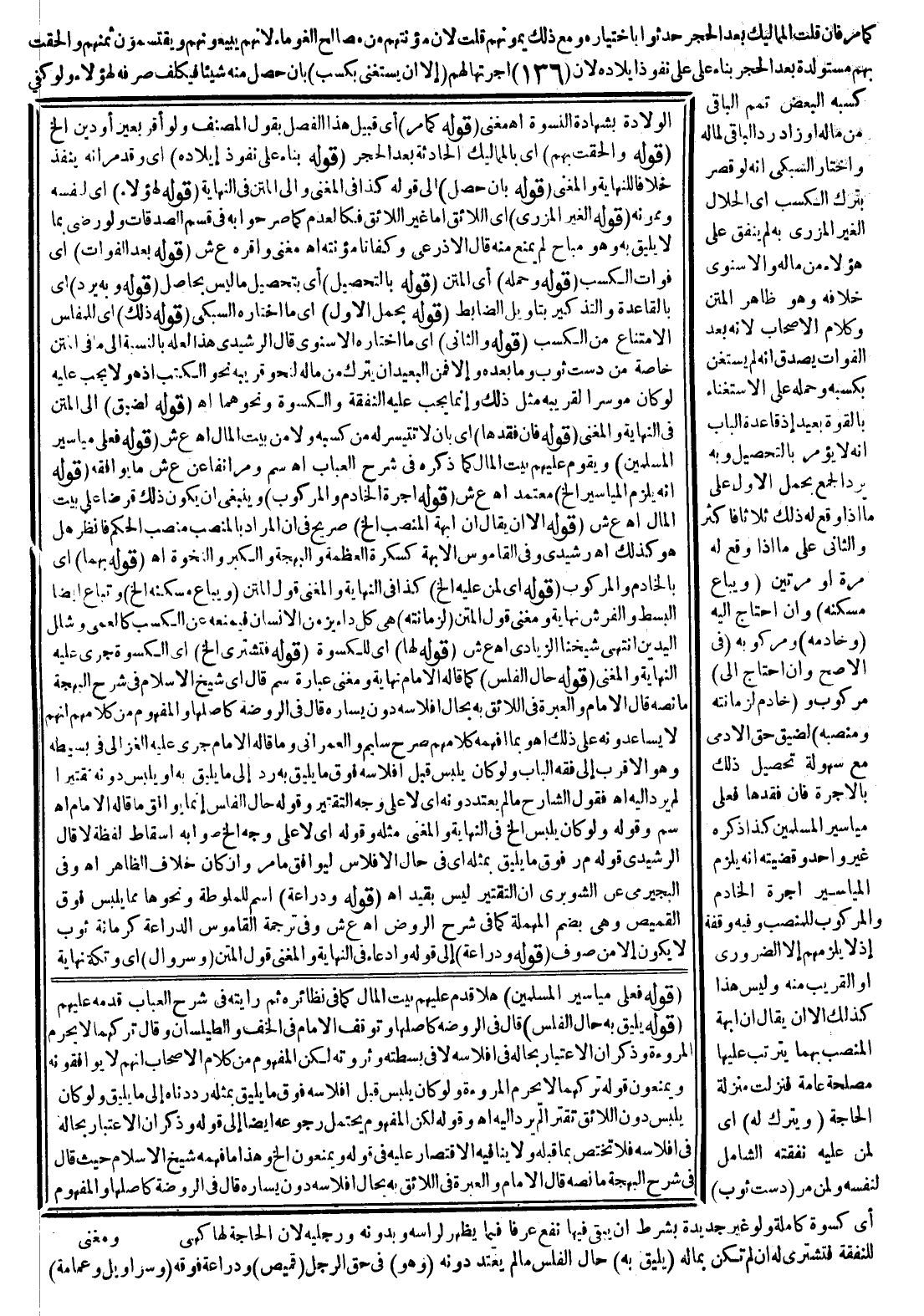 ـــــــــــــــــــــــــــــSقَوْلُهُ فَعَلَى مَيَاسِيرِ الْمُسْلِمِينَ) هَلَّا قَدَّمَ عَلَيْهِمْ بَيْتَ الْمَالِ كَمَا فِي نَظَائِرِهِ ثُمَّ رَأَيْته فِي شَرْحِ الْعُبَابِ قَدَّمَهُ عَلَيْهِمْ (قَوْلُهُ يَلِيقُ بِهِ حَالُ الْمُفْلِسِ) قَالَ فِي الرَّوْضَةِ كَأَصْلِهَا وَتَوَقَّفَ الْإِمَامُ فِي الْخُفِّ وَالطَّيْلَسَانِ وَقَالَ تَرْكُهُمَا لَا يَخْرِمُ الْمُرُوءَةَ وَذَكَرَ أَنَّ الِاعْتِبَارَ بِحَالِهِ فِي إفْلَاسِهِ لَا فِي بَسْطَتِهِ وَثَرْوَتِهِ لَكِنَّ الْمَفْهُومَ مِنْ كَلَامِ الْأَصْحَابِ أَنَّهُمْ لَا يُوَافِقُونَهُ وَيَمْنَعُونَ قَوْلَهُ تَرْكُهُمَا لَا يَخْرِمُ الْمُرُوءَةَ وَلَوْ كَانَ يَلْبَسُ قَبْلَ إفْلَاسِهِ فَوْقَ مَا يَلِيقُ بِمِثْلِهِ رَدَدْنَاهُ إلَى مَا يَلِيقُ وَلَوْ كَانَ يَلْبَسُ دُونَ اللَّائِقِ تَقَتُّرًا لَمْ يُرَدَّ إلَيْهِ اهـ وَقَوْلُهُ لَكِنَّ الْمَفْهُومَ إلَخْ يُحْتَمَلُ رُجُوعُهُ أَيْضًا إلَى قَوْلِهِ وَذَكَرَ أَنَّ الِاعْتِبَارَ بِحَالِهِ فِي إفْلَاسِهِ فَلَا تَخْتَصُّ بِمَا قَبْلَهُ وَلَا يُنَافِيهِ الِاقْتِصَارُ عَلَيْهِ فِي قَوْلِهِ وَيُمْنَعُونَ إلَخْ وَهَذَا مَا فَهِمَهُ شَيْخُ الْإِسْلَامِ حَيْثُ قَالَ فِي شَرْحِ الْبَهْجَةِ مَا نَصُّهُ قَالَ الْإِمَامُ وَالْعِبْرَةُ فِي اللَّائِقِ بِهِ بِحَالِ إفْلَاسِهِ دُونَ يَسَارِهِ قَالَ فِي الرَّوْضَةِ كَأَصْلِهَا وَالْمَفْهُومُ