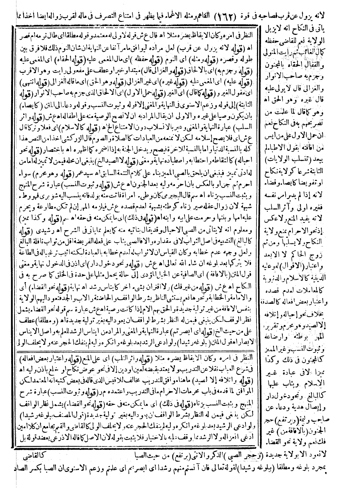(وَحَجْرُ الصَّبِيِّ) الذَّكَرِ وَالْأُنْثَى (يَرْتَفِعُ) مِنْ حَيْثُ الصِّبَا بِمُجَرَّدِ بُلُوغِهِ وَمُطْلَقًا (بِبُلُوغِهِ رَشِيدًا) لِقَوْلِهِ تَعَالَى {فَإِنْ آنَسْتُمْ مِنْهُمْ رُشْدًا} [النساء: 6] أَيْ: أَبْصَرْتُمْ أَيْ: عَلِمْتُمْ وَزَعَمَ الْإِسْنَوِيُّ أَنَّ الصِّبَا بِكَسْرِ الصَّادِ