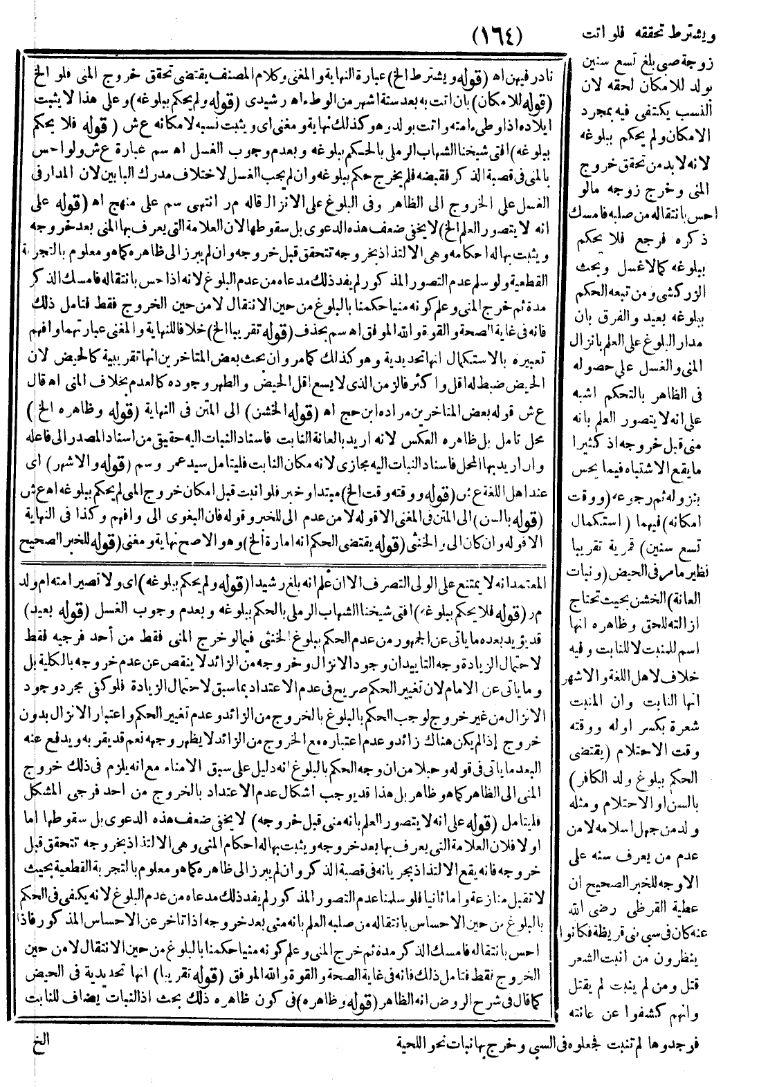 (قَوْلُهُ وَلَمْ يُحْكَمْ بِبُلُوغِهِ) أَيْ: وَلَا تَصِيرُ أَمَتُهُ أُمَّ وَلَدٍ م ر (قَوْلُهُ فَلَا يُحْكَمُ بِبُلُوغِهِ) أَفْتَى شَيْخُنَا الشِّهَابُ الرَّمْلِيُّ بِالْحُكْمِ بِبُلُوغِهِ وَبِعَدَمِ وُجُوبِ الْغُسْلِ (قَوْلُهُ بَعِيدٌ) قَدْ يُؤَيِّدُ بُعْدُهُ مَا يَأْتِي عَنْ الْجُمْهُورِ مِنْ عَدَمِ الْحُكْمِ بِبُلُوغِ الْخُنْثَى فِيمَا لَوْ خَرَجَ الْمَنِيُّ فَقَطْ مِنْ أَحَدِ فَرْجَيْهِ فَقَطْ لِاحْتِمَالِ الزِّيَادَةِ وَجْهُ التَّأْيِيدِ أَنَّ وُجُودَ الْإِنْزَالِ وَخُرُوجَهُ مِنْ الزَّائِدِ لَا يَنْقُصُ عَنْ عَدَمِ خُرُوجِهِ بِالْكُلِّيَّةِ بَلْ وَمَا يَأْتِي عَنْ الْإِمَامِ؛ لِأَنَّ تَغْيِيرَ الْحُكْمِ صَرِيحٌ فِي عَدَمِ الِاعْتِدَادِ بِمَا سَبَقَ لِاحْتِمَالِ الزِّيَادَةِ فَلَوْ كَفَى مُجَرَّدُ وُجُودِ الْإِنْزَالِ مِنْ غَيْرِ خُرُوجٍ لَوَجَبَ الْحُكْمُ بِالْبُلُوغِ بِالْخُرُوجِ مِنْ الزَّائِدِ وَعَدَمِ تَغْيِيرِ الْحُكْمِ وَاعْتِبَارِ الْإِنْزَالِ بِدُونِ خُرُوجٍ إذَا لَمْ يَكُنْ هُنَاكَ زَائِدٌ وَعَدَمُ اعْتِبَارِهِ مَعَ الْخُرُوجِ مِنْ الزَّائِدِ لَا يَظْهَرُ وَجْهُهُ نَعَمْ قَدْ يُقِرُّ بِهِ وَيَدْفَعُ عَنْهُ الْبُعْدَ مَا يَأْتِي فِي قَوْلِهِ وَحَبَلًا مِنْ أَنَّ وَجْهَ الْحُكْمِ بِالْبُلُوغِ أَنَّهُ دَلِيلٌ عَلَى سَبْقِ الْإِمْنَاءِ مَعَ أَنَّهُ لَا يَلْزَمُ فِي ذَلِكَ خُرُوجُ الْمَنِيِّ إلَى الظَّاهِرِ كَمَا هُوَ ظَاهِرٌ بَلْ هَذَا قَدْ يُوجِبُ إشْكَالَ عَدَمِ الِاعْتِدَادِ بِالْخُرُوجِ مِنْ أَحَدِ فَرْجَيْ الْمُشْكِلِ فَلْيُتَأَمَّلْ.