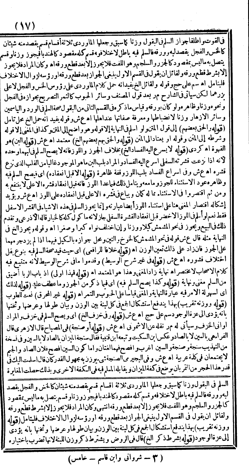ـــــــــــــــــــــــــــــSالسَّلَمِ فِي الْبُقُولِ وَزْنًا كَمَا سَبَقَ وَجَعَلَهَا الْمَاوَرْدِيُّ ثَلَاثَةَ أَقْسَامٍ قِسْمٌ يُقْصَدُ مِنْهُ شَيْئَانِ كَالْخَسِّ وَالْفُجْلِ يُقْصَدُ لُبُّهُ وَوَرَقُهُ فَالسَّلَمُ فِيهِ بَاطِلٌ لِاخْتِلَافِهِ وَقِسْمٌ كُلُّهُ مَقْصُودٌ كَالْهِنْدَبَا فَيَجُوزُ وَزْنًا وَقِسْمٌ يَتَّصِلُ بِهِ مَا لَيْسَ بِمَقْصُودٍ كَالْجَزَرِ وَالسَّلْجَمِ وَهُوَ اللِّفْتُ فَلَا يَجُوزُ إلَّا بَعْدَ قَطْعِ وَرَقِهِ انْتَهَى وَكَانَ الْمُرَادَ فَلَا يَجُوزُ إلَّا بِشَرْطِ قَطْعِ وَرَقِهِ وَلِقَائِلٍ أَنْ يَقُولَ فِي الْقِسْمِ الْأَوَّلِ يَنْبَغِي الْجَوَازُ بَعْدَ قَطْعِ وَرَقِهِ أَوْ رُءُوسِهِ لِزَوَالِ الِاخْتِلَافِ فَلْيُتَأَمَّلْ.