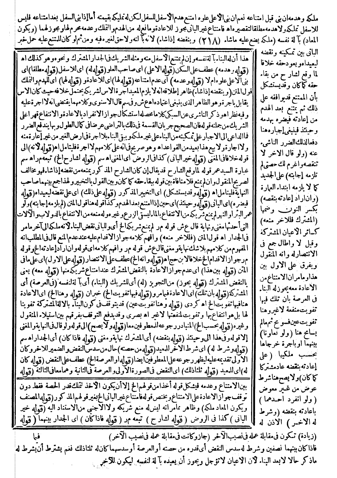 ـــــــــــــــــــــــــــــQهَذَا أَنَّ لَهُ الْبِنَاءَ بِآلَةِ نَفْسِهِ وَإِنْ لَمْ يَمْتَنِعْ الْأَسْفَلُ مِنْهُ وَمِثْلُهُ الشَّرِيكُ فِي الْجِدَارِ الْمُشْتَرَكِ وَنَحْوِهِ وَهُوَ كَذَلِكَ اهـ.