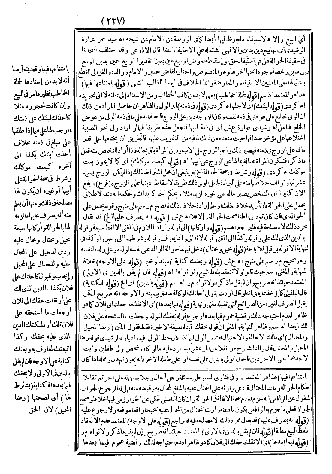 وَفِي فَتَاوَى السُّيُوطِيّ مَسْأَلَةٌ رَجُلٌ أَحَالَ رَجُلًا بِدَيْنٍ لَهُ عَلَى آخَرَ ثُمَّ تَقَايَلَا أَحْكَامَ الْحَوَالَةِ وَمَاتَ الْمُحْتَالُ فَادَّعَى وَارِثُهُ عَلَى الْمُحْتَالِ عَلَيْهِ بِالْمَبْلَغِ الْمُحَالِ بِهِ وَقَبَضَهُ مِنْهُ فَهَلْ لَهُ الرُّجُوعُ الْجَوَابُ الْمَنْقُولُ عَنْ الرَّافِعِيِّ أَنَّهُ جَزَمَ بِعَدَمِ صِحَّةِ الْإِقَالَةِ فِي الْحَوَالَةِ وَإِنْ كَانَ الْبُلْقِينِيُّ حَكَى عَنْ الْخُوَارِزْمِيِّ فِيهَا خِلَافًا وَصَحَّحَ الْجَوَازَ فَعَلَى مَا جَزَمَ بِهِ الرَّافِعِيُّ يَكُونُ مَا قَبَضَهُ وَارِثُ الْمُحْتَالِ مِنْ الْمُحَالِ عَلَيْهِ صَحِيحًا وَاقِعًا مَوْقِعَهُ وَلَا رُجُوعَ عَلَيْهِ اهـ.