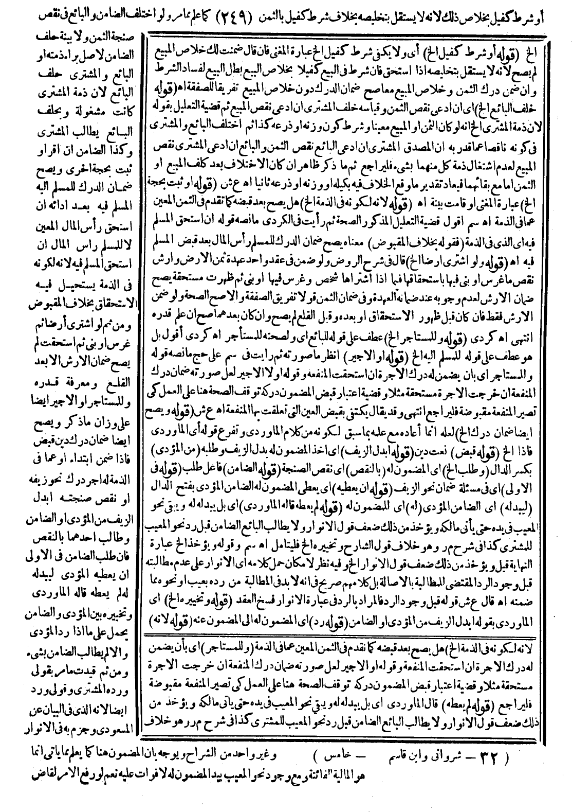 وَتَخْيِيرُهُ بَيْنَ الْمُؤَدِّي وَالضَّامِنِ يُحْمَلُ عَلَى مَا إذَا رَدَّ الْمُؤَدِّي وَإِلَّا لَمْ يُطَالِبْ الضَّامِنُ بِشَيْءٍ وَمِنْ ثَمَّ قَيَّدْتُ مَا مَرَّ بِقَوْلِي وَرَدَّهُ الْمُشْتَرِي وَقَوْلِي وَرَدَّ أَيْضًا لِأَنَّهُ الَّذِي فِي الْبَيَانِ عَنْ الْمَسْعُودِيِّ وَجَزَمَ بِهِ فِي الْأَنْوَارِ وَغَيْرُ وَاحِدٍ مِنْ الشُّرَّاحِ وَيُوَجَّهُ بِأَنَّ الْمَضْمُونَ هُنَا كَمَا يُعْلَمُ مِمَّا يَأْتِي إنَّمَا هُوَ الْمَالِيَّةُ الْفَائِتَةُ وَمَعَ وُجُودِ نَحْوِ الْمَعِيبِ بِيَدِ الْمَضْمُونِ لَهُ لَا فَوَاتَ عَلَيْهِ نَعَمْ لَوْ رُفِعَ الْأَمْرُ لِقَاضٍ