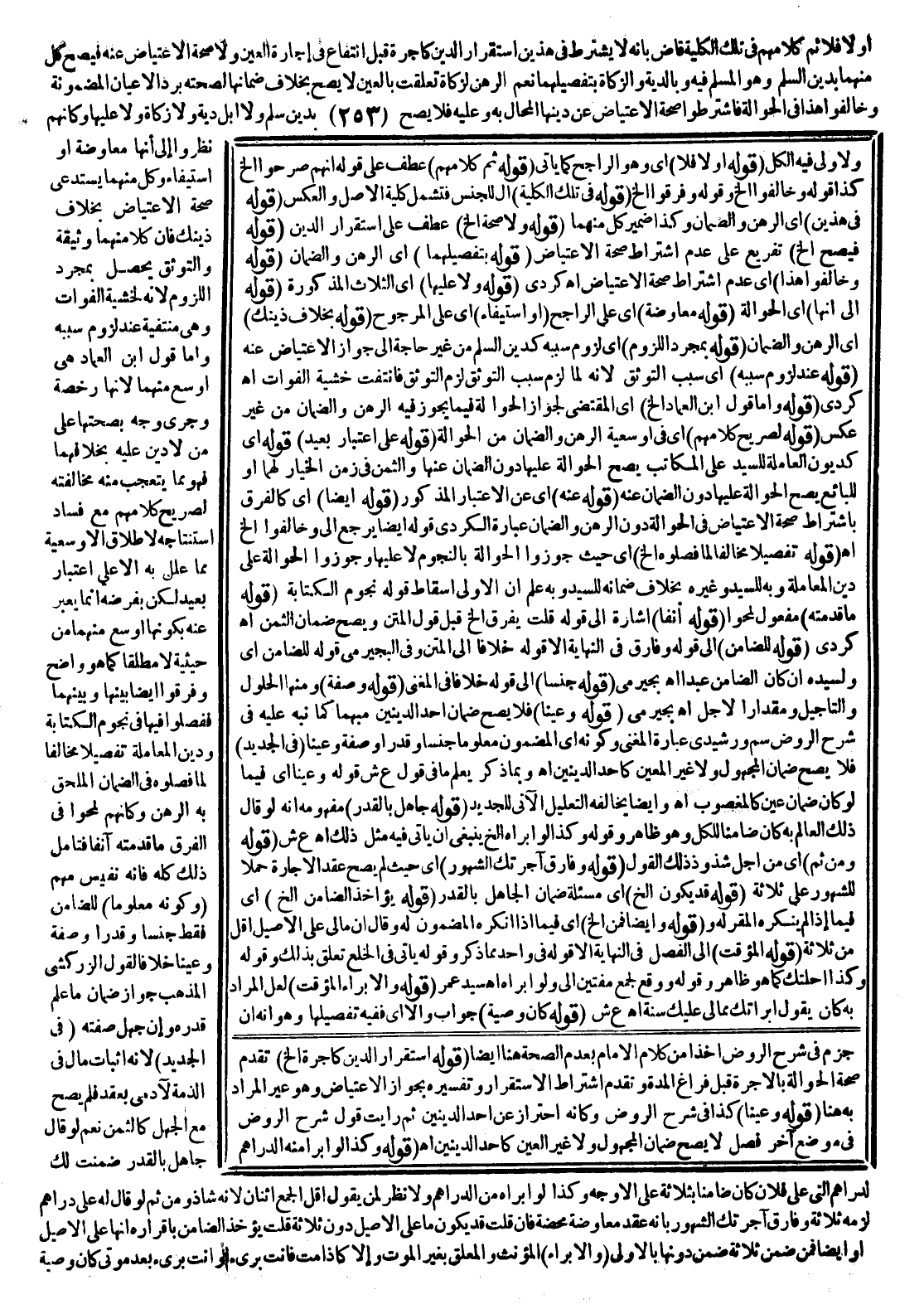 ـــــــــــــــــــــــــــــQوَالْأَوْلَى فِيهِ الْكُلُّ (قَوْلُهُ أَوَّلًا فَلَا) أَيْ وَهُوَ الرَّاجِحُ كَمَا يَأْتِي (قَوْلُهُ ثُمَّ كَلَامُهُمْ إلَخْ) عَطْفٌ عَلَى قَوْلِهِ أَنَّهُمْ صَرَّحُوا إلَخْ كَذَا قَوْلُهُ وَخَالَفُوا إلَخْ وَقَوْلُهُ وَفَرَّقُوا إلَخْ (قَوْلُهُ فِي تِلْكَ الْكُلِّيَّةِ) أَلْ لِلْجِنْسِ فَتَشْمَلُ كُلِّيَّةَ الْأَصْلِ وَالْعَكْسَ (قَوْلُهُ فِي هَذَيْنِ) أَيْ الرَّهْنِ وَالضَّمَانِ وَكَذَا ضَمِيرُ كُلٍّ مِنْهُمَا (قَوْلُهُ وَلَا صِحَّةَ إلَخْ) عَطْفٌ عَلَى اسْتِقْرَارِ الدَّيْنِ (قَوْلُهُ فَيَصِحُّ إلَخْ) تَفْرِيعٌ عَلَى عَدَمِ اشْتِرَاطِ صِحَّةِ الِاعْتِيَاضِ (قَوْلُهُ بِتَفْصِيلِهِمَا) أَيْ الرَّهْنِ وَالضَّمَانِ (قَوْلُهُ وَخَالَفُوا هَذَا) أَيْ عَدَمَ اشْتِرَاطِ صِحَّةِ الِاعْتِيَاضِ اهـ كُرْدِيٌّ (قَوْلُهُ وَلَا عَلَيْهَا) أَيْ الثَّلَاثِ الْمَذْكُورَةِ (قَوْلُهُ إلَى أَنَّهَا) أَيْ الْحَوَالَةَ (قَوْلُهُ مُعَاوَضَةٌ) أَيْ عَلَى الرَّاجِحِ (أَوْ اسْتِيفَاءٌ) أَيْ عَلَى الْمَرْجُوحِ (قَوْلُهُ بِخِلَافِ ذَيْنِكَ) أَيْ الرَّهْنِ وَالضَّمَانِ (قَوْلُهُ بِمُجَرَّدِ اللُّزُومِ) أَيْ لُزُومِ سَبَبِهِ كَدَيْنِ السَّلَمِ مِنْ غَيْرِ حَاجَةٍ إلَى جَوَازِ الِاعْتِيَاضِ عَنْهُ (قَوْلُهُ عِنْدَ لُزُومِ سَبَبِهِ) أَيْ بِسَبَبِ التَّوَثُّقِ لِأَنَّهُ لَمَّا لَزِمَ سَبَبُ التَّوَثُّقِ لَزِمَ التَّوَثُّقُ فَانْتَفَتْ خَشْيَةَ الْفَوَاتِ اهـ كُرْدِيٌّ (قَوْلُهُ وَأَمَّا قَوْلُ ابْنِ الْعِمَادِ إلَخْ) أَيْ الْمُقْتَضِي لِجَوَازِ الْحَوَالَةِ فِيمَا يَجُوزُ فِيهِ الرَّهْنُ وَالضَّمَانُ مِنْ غَيْرِ عَكْسٍ (قَوْلُهُ لِصَرِيحِ كَلَامِهِمْ) أَيْ فِي أَوْسَعِيَّةِ الرَّهْنِ وَالضَّمَانِ مِنْ الْحَوَالَةِ (قَوْلُهُ عَلَى اعْتِبَارٍ بَعِيدٍ) أَيْ كَدُيُونِ الْمُعَامَلَةِ لِلسَّيِّدِ عَلَى الْمُكَاتَبِ يَصِحُّ الْحَوَالَةُ عَلَيْهَا دُونَ الضَّمَانِ عَنْهَا وَالثَّمَنُ فِي زَمَنِ الْخِيَارِ لَهُمَا أَوْ لِلْبَائِعِ يَصِحُّ الْحَوَالَةُ عَلَيْهَا دُونَ الضَّمَانِ عَنْهُ (قَوْلُهُ عَنْهُ) أَيْ عَنْ الِاعْتِبَارِ الْمَذْكُورِ (قَوْلُهُ أَيْضًا) أَيْ كَالْفَرْقِ بِاشْتِرَاطِ صِحَّةِ الِاعْتِيَاضِ فِي الْحَوَالَةِ دُونَ الرَّهْنِ وَالضَّمَانِ عِبَارَةُ الْكُرْدِيِّ قَوْلُهُ أَيْضًا يَرْجِعُ إلَيَّ وَخَالَفُوا إلَخْ اهـ.