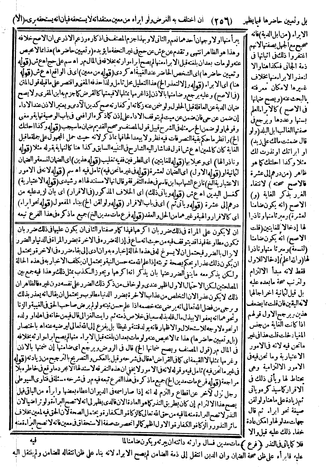 ـــــــــــــــــــــــــــــQيَبْرَأُ مِنْهَا أَوْ لَا وَجْهَانِ أَحَدُهُمَا نَعَمْ وَالثَّانِي لَا وَبِهَذَا جَزَمَ الْمُصَنِّفُ فِي أَذْكَارِهِ وَزَعَمَ الْأَذْرَعِيُّ أَنَّ الْأَصَحَّ خِلَافُهُ وَهَذَا هُوَ الظَّاهِرُ انْتَهَى وَتَقَدَّمَ عَنْ ع ش عَنْ حَجّ فِي غَيْرِ التُّحْفَةِ مَا يُؤَيِّدُهُ (قَوْلُهُ وَتَعْيِينُ حَاضِرِهَا) هَذَا مِمَّا لَا مَحِيصَ عَنْهُ وَلَوْ مَاتَ بَعْدَ أَنْ بَلَغَتْهُ قَبْلَ الْإِبْرَاءِ مِنْهَا لَمْ يَصِحَّ إبْرَاءُ وَارِثِهِ بِخِلَافِهِ فِي الْمَالِ م ر اهـ سم عَلَى حَجّ اهـ ع ش.