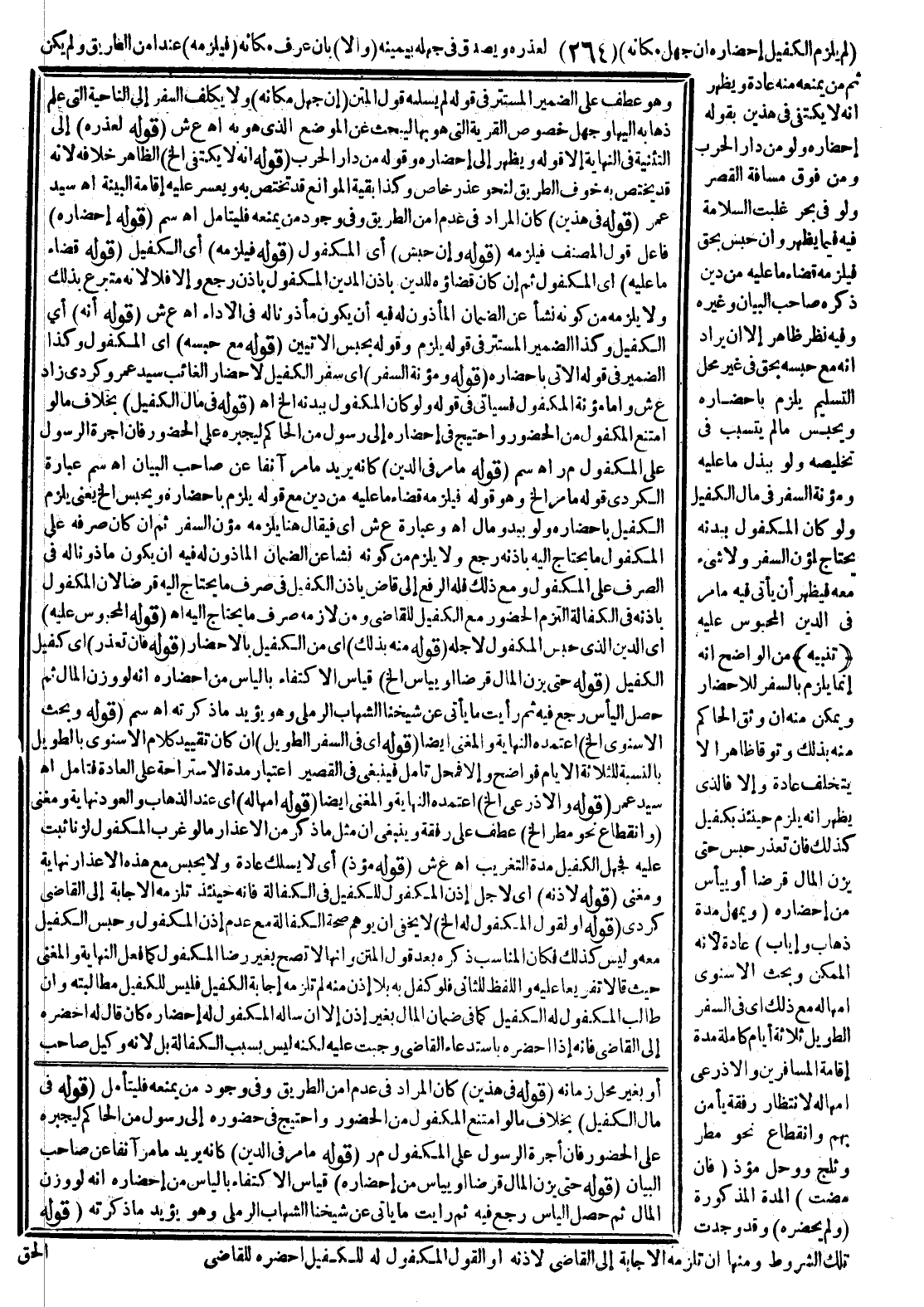 ـــــــــــــــــــــــــــــQوَهُوَ عَطْفٌ عَلَى الضَّمِيرِ الْمُسْتَتِرِ فِي قَوْلِهِ لَمْ يُسَلِّمْهُ قَوْلُ الْمَتْنِ (إنْ جَهِلَ مَكَانَهُ) وَلَا يُكَلَّفُ السَّفَرَ إلَى النَّاحِيَةِ الَّتِي عَلِمَ ذَهَابَهُ إلَيْهَا وَجَهِلَ خُصُوصَ الْقَرْيَةِ الَّتِي هُوَ بِهَا لِيَبْحَثَ عَنْ الْمَوْضِعِ الَّذِي هُوَ بِهِ اهـ ع ش (قَوْلُهُ لِعُذْرِهِ) إلَى التَّنْبِيهِ فِي النِّهَايَةِ إلَّا قَوْلَهُ وَيَظْهَرُ إلَى إحْضَارِهِ وَقَوْلُهُ مِنْ دَارِ الْحَرْبِ (قَوْلُهُ أَنَّهُ لَا يَكْتَفِي إلَخْ) الظَّاهِرُ خِلَافُهُ لِأَنَّهُ قَدْ يَخْتَصُّ بِهِ خَوْفُ الطَّرِيقِ لِنَحْوِ عُذْرٍ خَاصٍّ وَكَذَا بَقِيَّةُ الْمَوَانِعِ قَدْ تَخْتَصُّ بِهِ وَيَعْسُرُ عَلَيْهِ إقَامَةُ الْبَيِّنَةِ اهـ سَيِّدُ عُمَرَ (قَوْلُهُ فِي هَذَيْنِ) كَانَ الْمُرَادُ فِي عَدَمِ أَمْنِ الطَّرِيقِ وَفِي وُجُودِ مَنْ يَمْنَعُهُ فَلْيُتَأَمَّلْ اهـ سم (قَوْلُهُ إحْضَارُهُ) فَاعِلُ قَوْلِ الْمُصَنِّفِ فَيَلْزَمُهُ (قَوْلُهُ وَإِنْ حُبِسَ) أَيْ الْمَكْفُولُ (قَوْلُهُ فَيَلْزَمُهُ) أَيْ الْكَفِيلُ (قَوْلُهُ قَضَاءَ مَا عَلَيْهِ) أَيْ الْمَكْفُولِ ثُمَّ إنْ كَانَ قَضَاؤُهُ لِلدَّيْنِ بِإِذْنِ الْمَدِينِ الْمَكْفُولِ بِإِذْنٍ رَجَعَ وَإِلَّا فَلَا لِأَنَّهُ مُتَبَرِّعٌ بِذَلِكَ وَلَا يَلْزَمُهُ مِنْ كَوْنِهِ نَشَأَ عَنْ الضَّمَانِ الْمَأْذُونِ لَهُ فِيهِ أَنْ يَكُونَ مَأْذُونًا لَهُ فِي الْأَدَاءِ اهـ.