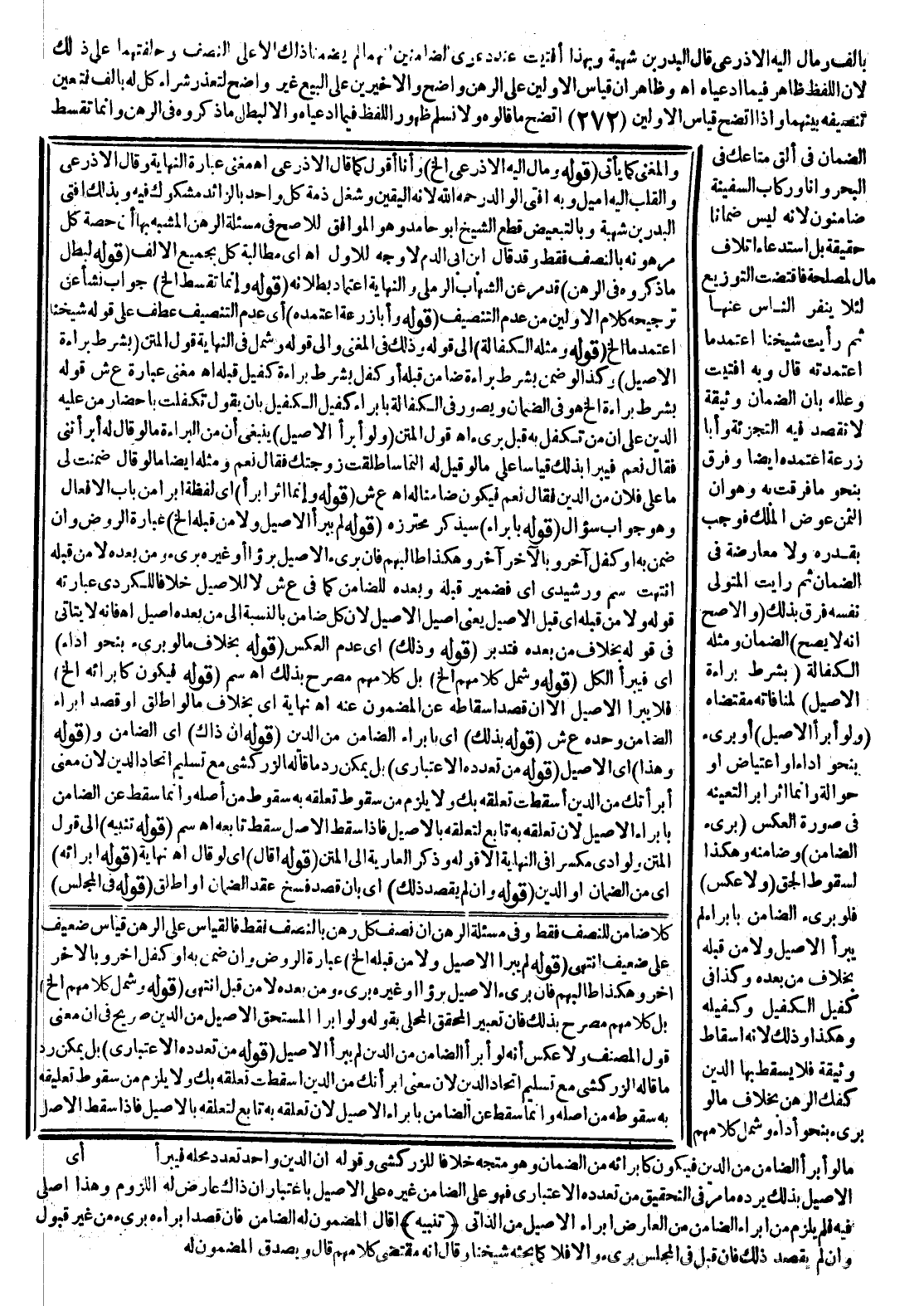 قَالَ وَبِهِ أَفْتَيْت وَعَلَّلَهُ بِأَنَّ الضَّمَانَ وَثِيقَةٌ لَا تُقْصَدُ فِيهِ التَّجْزِئَةُ وَأَبَا زُرْعَةَ اعْتَمَدَهُ أَيْضًا وَفَرَّقَ بِنَحْوِ مَا فَرَّقْتُ بِهِ وَهُوَ أَنَّ الثَّمَنَ عِوَضُ الْمِلْكِ فَوَجَبَ بِقَدْرِهِ وَلَا مُعَاوَضَةَ فِي الضَّمَانِ ثُمَّ رَأَيْت الْمُتَوَلِّي نَفْسَهُ فَرَّقَ بِذَلِكَ.
