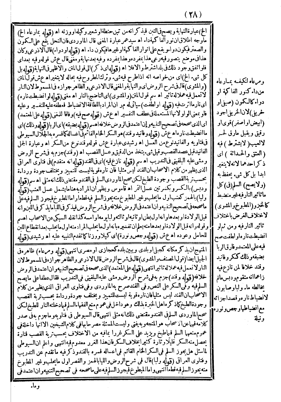 قَالَ السُّيُوطِيّ فِي فَتَاوِيهِ وَمَا جَزَمَ بِهِ فِي صَدْرِ كَلَامِهِ فَهْمًا عَنْ الْأَصْحَابِ هُوَ الْمُتَّجَهُ وَبِهِ يُفْتَى وَلَيْسَتْ الْمَسْأَلَةُ مُصَرَّحًا بِهَا فِي كَلَامِ الشَّيْخَيْنِ إلَّا أَنَّهَا دَاخِلَةٌ فِي عُمُومِ مَنْعِهِمَا السَّلَمَ فِيمَا طُبِخَ وَيَزِيدُ عَلَى السُّكَّرِ غَرَرًا بِمَا فِيهِ مِنْ الِاخْتِلَافِ بِحَسَبِ تُرْبَةِ الْقَصَبِ فَتَارَةً يَحْصُلُ مِنْهُ السُّكَّرُ قَلِيلًا وَتَارَةً كَثِيرًا بِخِلَافِ السُّكَّرِ فَإِنَّ هَذَا الْغَرَرَ مَعْدُومٌ فِيهِ انْتَهَى.