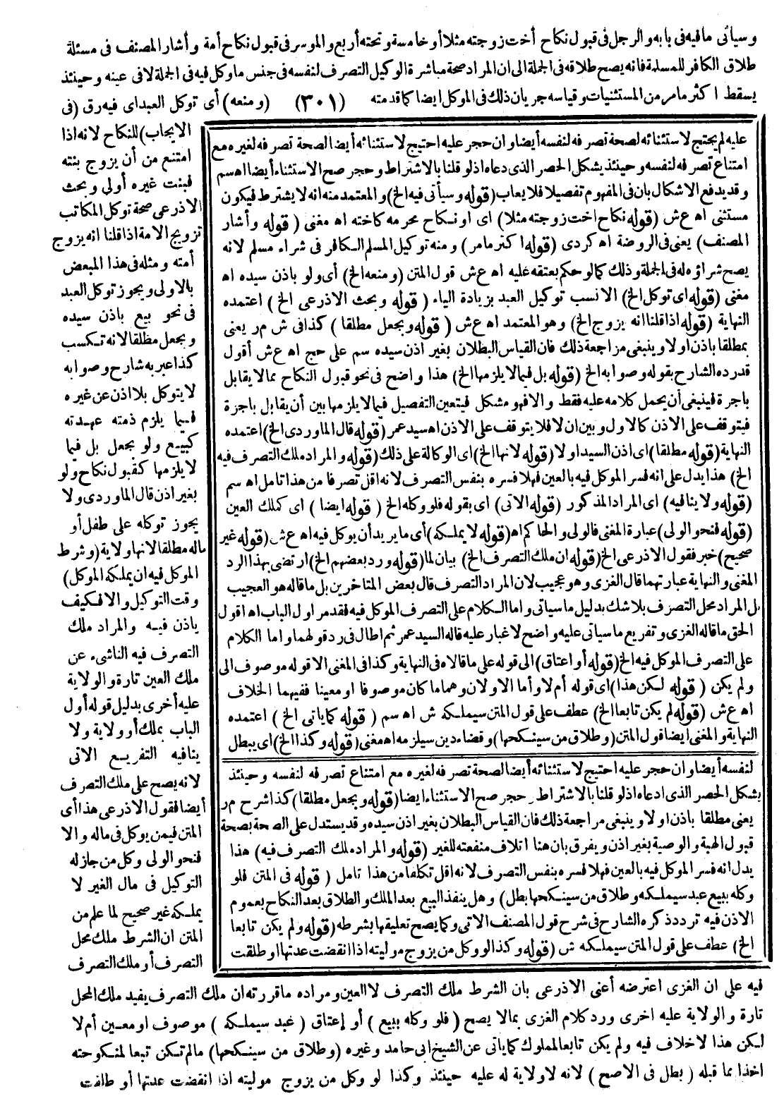 ـــــــــــــــــــــــــــــQعَلَيْهِ لَمْ يُحْتَجْ لِاسْتِثْنَائِهِ لِصِحَّةِ تَصَرُّفِهِ لِنَفْسِهِ أَيْضًا وَإِنْ حَجَرَ عَلَيْهِ اُحْتِيجَ لِاسْتِثْنَائِهِ أَيْضًا لِصِحَّةِ تَصَرُّفِهِ لِغَيْرِهِ مَعَ امْتِنَاعِ تَصَرُّفِهِ لِنَفْسِهِ وَحِينَئِذٍ يُشْكِلُ الْحَصْرُ الَّذِي ادَّعَاهُ إذْ لَوْ قُلْنَا بِالِاشْتِرَاطِ وَحَجَرَ صَحَّ الِاسْتِثْنَاءُ أَيْضًا اهـ سم وَقَدْ يُدْفَعُ الْإِشْكَالُ بِأَنَّ فِي الْمَفْهُومِ تَفْصِيلًا فَلَا يُعَابُ (قَوْلُهُ وَسَيَأْتِي مَا فِيهِ إلَخْ) وَالْمُعْتَمَدُ مِنْهُ أَنَّهُ لَا يُشْتَرَطُ فَيَكُونُ مُسْتَثْنًى اهـ ع ش (قَوْلُهُ نِكَاحِ أُخْتِ زَوْجَتِهِ مَثَلًا) أَيْ أَوْ نِكَاحِ مَحْرَمِهِ كَأُخْتِهِ اهـ مُغْنِي (قَوْلُهُ وَأَشَارَ الْمُصَنِّفُ) يَعْنِي فِي الرَّوْضَةِ اهـ كُرْدِيٌّ (قَوْلُهُ أَكْثَرُ مَا مَرَّ) وَمِنْهُ تَوْكِيلُ الْمُسْلِمِ الْكَافِرَ فِي شِرَاءِ مُسْلِمٍ لِأَنَّهُ يَصِحُّ شِرَاؤُهُ لَهُ فِي الْجُمْلَةِ وَذَلِكَ كَمَا لَوْ حَكَمَ بِعِتْقِهِ عَلَيْهِ اهـ ع ش قَوْلُ الْمَتْنِ (وَمَنْعِهِ إلَخْ) أَيْ وَلَوْ بِإِذْنِ سَيِّدِهِ اهـ مُغْنِي (قَوْلُهُ أَيْ تَوَكُّلِ إلَخْ) الْأَنْسَبُ تَوْكِيلِ الْعَبْدِ بِزِيَادَةِ الْيَاءِ.