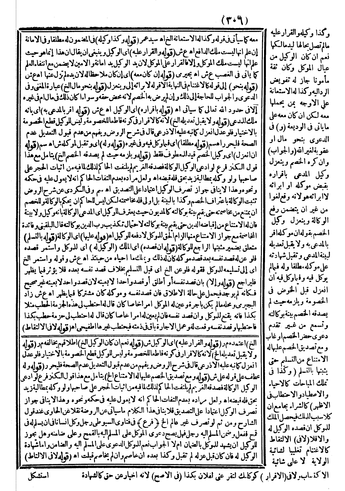 ـــــــــــــــــــــــــــــQمَعَهُ كَمَا سَيَأْتِي فِي قَوْلِهِ وَكَذَا لَهُ الِاسْتِعَانَةُ إلَخْ اهـ سَيِّدُ عُمَرُ (قَوْلُهُ وَكَذَا وَكِيلُهُ) فِي الْمَضْمُونِ لَهُ مُطْلَقًا وَفِي الْأَمَانَةِ إنْ عَلِمَ أَنَّهَا لَيْسَتْ مِلْكَ الدَّافِعِ اهـ ع ش (قَوْلُهُ وَالْقَرَارُ عَلَيْهِ) أَيْ الْوَكِيلِ وَيَنْبَغِي أَنْ يُقَالَ إنَّ هَذَا إنَّمَا هُوَ حَيْثُ عَلِمَ أَنَّهَا لَيْسَتْ مِلْكَ الْمُوَكِّلِ وَإِلَّا فَالْقَرَارُ عَلَى الْمُوَكِّلِ لِأَنَّ يَدَ الْوَكِيلِ يَدُ أَمَانَةٍ وَالْأَمِينُ لَا يَضْمَنُ مَعَ انْتِفَاءِ الْعِلْمِ كَمَا يَأْتِي فِي الْغَصْبِ ع ش اهـ بُجَيْرِمِيٌّ (قَوْلُهُ إنْ كَانَ مَعَهُ) أَيْ إنْ كَانَ مُلَاحِظًا لَهُ لِأَنَّ يَدَهُ لَمْ تَزُلْ عَنْهَا اهـ ع ش (قَوْلُهُ بِنَحْوِ) إلَى قَوْلِهِ كَالِاغْتِنَامِ فِي النِّهَايَةِ إلَّا قَوْلَهُ لِإِبْرَائِهِ إلَى وَيَنْعَزِلُ (قَوْلُهُ بِنَحْوِ مَالٍ إلَخْ) عِبَارَةُ الْمُغْنِي وَفِي الدَّعْوَى وَالْجَوَابِ لِلْحَاجَةِ إلَى ذَلِكَ وَإِنْ لَمْ يَرْضَ بِهِ الْخَصْمُ لِأَنَّهُ مَحْضُ حَقِّهِ وَسَوَاءٌ أَكَانَ ذَلِكَ فِي مَالٍ أَمْ فِي غَيْرِهِ إلَّا فِي حُدُودِ اللَّهِ تَعَالَى كَمَا سَيَأْتِي اهـ.