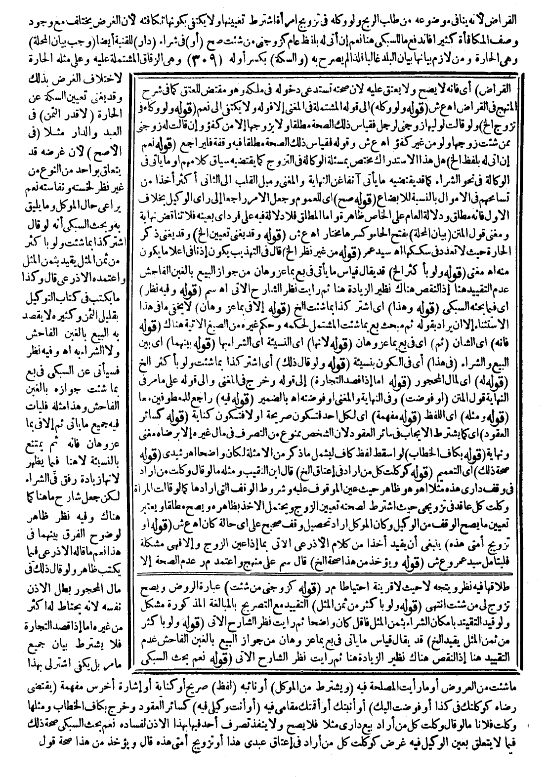 ـــــــــــــــــــــــــــــQالْقِرَاضِ) أَيْ فَإِنَّهُ لَا يَصِحُّ وَلَا يُعْتَقُ عَلَيْهِ لِأَنَّ صِحَّتَهُ تَسْتَدْعِي دُخُولَهُ فِي مِلْكِهِ وَهُوَ مُقْتَضٍ لِلْعِتْقِ كَمَا فِي شَرْحِ الْمَنْهَجِ فِي الْقِرَاضِ اهـ ع ش (قَوْلُهُ وَلَوْ وَكَّلَهُ) إلَى قَوْلِهِ الْمُشْتَمِلَةُ فِي الْمُغْنِي إلَّا قَوْلَهُ وَلَا يَكْتَفِي إلَى نَعَمْ (قَوْلُهُ وَلَوْ وَكَّلَهُ فِي تَزْوِيجِ إلَخْ) وَلَوْ قَالَتْ لِوَلِيِّهَا زَوِّجْنِي لِرَجُلٍ فَقِيَاسُ ذَلِكَ الصِّحَّةُ مُطْلَقًا وَلَا يُزَوِّجُهَا إلَّا مِنْ كُفْءٍ وَإِنْ قَالَتْ لَهُ زَوِّجْنِي مِمَّنْ شِئْت زَوَّجَهَا وَلَوْ مِنْ غَيْرِ كُفْءٍ اهـ ع ش وَقَوْلُهُ فَقِيَاسُ ذَلِكَ الصِّحَّةُ مُطْلَقًا فِيهِ وَقْفَةٌ فَلْيُرَاجَعْ (قَوْلُهُ نَعَمْ إنْ أَتَى لَهُ بِلَفْظِ إلَخْ) هَلْ هَذَا الِاسْتِدْرَاكُ مُخْتَصٌّ بِمَسْأَلَةِ الْوَكَالَةِ فِي التَّزْوِيجِ كَمَا يَقْتَضِيهِ سِيَاقُ كَلَامِهِمْ أَوْ مَا يَأْتِي فِي الْوَكَالَةِ فِي نَحْوِ الشِّرَاءِ كَمَا قَدْ يَقْتَضِيهِ مَا يَأْتِي آنِفًا عَنْ النِّهَايَةِ وَالْمُغْنِي وَمَيْلُ الْقَلْبِ إلَى الثَّانِي أَكْثَرُ أَخْذًا مِنْ تَسَامُحِهِمْ فِي الْأَمْوَالِ بِالنِّسْبَةِ لِلْأَبْضَاعِ (قَوْلُهُ صَحَّ) أَيْ لِلْعُمُومِ وَجَعْلِ الْأَمْرِ رَاجِعًا إلَى رَأْيِ الْوَكِيلِ بِخِلَافِ الْأَوَّلِ فَإِنَّهُ مُطْلَقٌ وَدَلَالَةُ الْعَامِّ عَلَى الْخَاصِّ ظَاهِرَةٌ وَأَمَّا الْمُطْلَقُ فَلَا دَلَالَةَ فِيهِ عَلَى فَرْدٍ أَيْ بِعَيْنِهِ فَلَا تَنَاقُضَ نِهَايَةٌ وَمُغْنِي قَوْلُ الْمَتْنِ (بَيَانُ الْمَحَلَّةِ) بِفَتْحِ الْحَاءِ وَكَسْرِهَا مُخْتَارٌ اهـ ع ش (قَوْلُهُ وَقَدْ يُغْنِي تَعْيِينُ إلَخْ) وَقَدْ يُغْنِي ذِكْرُ الْحَارَةِ حَيْثُ لَا تَعَدُّدَ فِي سِكَكِهَا اهـ سَيِّدُ عُمَرُ (قَوْلُهُ مِنْ غَيْرِ نَظَرٍ إلَخْ) قَالَ فِي التَّهْذِيبِ يَكُونُ إذْنًا فِي أَعْلَى مَا يَكُونُ مِنْهُ اهـ مُغْنِي (قَوْلُهُ وَلَوْ بِأَكْثَرَ إلَخْ) قَدْ يُقَالُ قِيَاسُ مَا يَأْتِي فِي بِعْ بِمَا عَزَّ وَهَانَ مِنْ جَوَازِ الْبَيْعِ بِالْغَبْنِ الْفَاحِشِ عَدَمُ التَّقَيُّدِ هُنَا إذْ النَّقْصُ هُنَاكَ نَظِيرُ الزِّيَادَةِ هُنَا ثُمَّ رَأَيْت نَظَرَ الشَّارِحِ الْآتِيَ اهـ سم (قَوْلُهُ وَفِيهِ نَظَرٌ) أَيْ فِيمَا بَحَثَهُ السُّبْكِيُّ (قَوْلُهُ وَهَذَا) أَيْ اشْتَرِ كَذَا بِمَا شِئْت إلَخْ (قَوْلُهُ إلَّا فِي بِمَا عَزَّ وَهَانَ) لَا يَخْفَى مَا فِي هَذَا الِاسْتِثْنَاءِ إلَّا أَنْ يُرَادَ بِقَوْلِهِ ثُمَّ مَبْحَثُ بِعْ بِمَا شِئْت الْمُشْتَمِلُ لِحُكْمِهِ وَحُكْمِ غَيْرِهِ مِنْ الصِّيَغِ الْآتِيَةِ هُنَاكَ (قَوْلُهُ فَإِنَّهُ) أَيْ الشَّأْنَ (ثَمَّ) أَيْ فِي بِعْ بِمَا عَزَّ وَهَانَ (قَوْلُهُ لِأَنَّهَا) أَيْ النَّسِيئَةَ أَيْ الشِّرَاءَ بِهَا (قَوْلُهُ بَيْنَهُمَا) أَيْ بَيْنَ الْبَيْعِ وَالشِّرَاءِ (فِي هَذَا) أَيْ فِي الْكَوْنِ بِنَسِيئَةٍ (قَوْلُهُ وَلَوْ قَالَ ذَلِكَ) أَيْ اشْتَرِ كَذَا بِمَا شِئْت وَلَوْ بِأَكْثَرَ إلَخْ (قَوْلُهُ لَهُ) أَيْ لِمَالِ الْمَحْجُورِ (قَوْلُهُ أَمَّا إذَا قَصَدَ التِّجَارَةَ) إلَى قَوْلِهِ وَخَرَجَ فِي الْمُغْنِي وَإِلَى قَوْلِهِ عَلَى مَا مَرَّ فِي النِّهَايَةِ