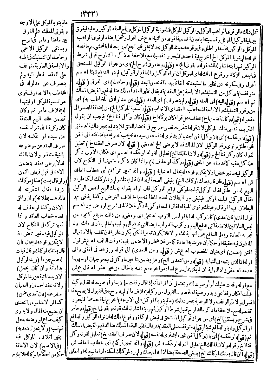 ـــــــــــــــــــــــــــــSمَعَ قَوْلِهِ: وَقَفْت عَلَيْك، أَوْ أَوْصَيْت لَك وَيُحْتَمَلُ أَنَّ الْمُرَادَ أَنَّهُ إذَا قَالَ وَقَفْت عَلَى زَيْدٍ، أَوْ أَوْصَيْت لَهُ فَقَالَ وَكِيلُهُ قَبِلْت لَهُ كَانَ وَاقِفًا عَلَى زَيْدٍ وَصِيَّةً لَهُ لِحُصُولِ الْقَبُولِ مِنْ وَكِيلِهِ بِخِلَافِ مَا لَوْ لَمْ يُصَرِّحْ بِهِ فِي الْقَبُولِ لَا يَصِحُّ هَذَا الْقَبُولُ وَلَا يَتِمُّ الْوَقْفُ وَلَا الْوَصِيَّةُ بِمُجَرَّدِ ذَلِكَ (قَوْلُهُ: مَا لَمْ يَنْوِيَا الْمُوَكِّلَ عَلَى الْأَوْجَهِ) أَخْرَجَ نِيَّةَ أَحَدِهِمَا فَلْيُحَرَّرْ تَفْصِيلُهُ مَعَ مُلَاحَظَةِ مَا ذَكَرَهُ الشَّارِحُ قُبَيْلَ شَرْطِ الْوَكِيلِ ثُمَّ رَأَيْته أَشَارَ لِذَلِكَ بِقَوْلِهِ: وَبِقَوْلِي إلَخْ (قَوْلُهُ: وَمَا مَرَّ فِي شَرْحِ وَيُسْتَثْنَى. إلَخْ) أَيْ مِنْ جَوَازِ تَوْكِيلِ الْمُسْتَحِقِّ فِي قَبْضِ الزَّكَاةِ وَوُقُوعِ الْمِلْكِ لَهُ إنْ نَوَاهُ الْوَكِيلُ وَالدَّافِعُ وَالْوَكِيلُ وَلَمْ يَنْوِ الدَّافِعُ شَيْئًا (قَوْلُهُ مُتَوَقِّفٌ عَلَى الْعَقْدِ) قَدْ يُقَالُ نَظِيرُ الْعَقْدِ الْمُمَلَّكِ هُنَا الدَّفْعُ وَالْقَبْضُ الْمُمَلَّكُ ثَمَّ (قَوْلُهُ: أَوْ عَكْسُهُ) أَيْ بِأَنْ وَكَّلَ الْقِنُّ غَيْرَهُ لِيَشْتَرِيَ لَهُ نَفْسَهُ