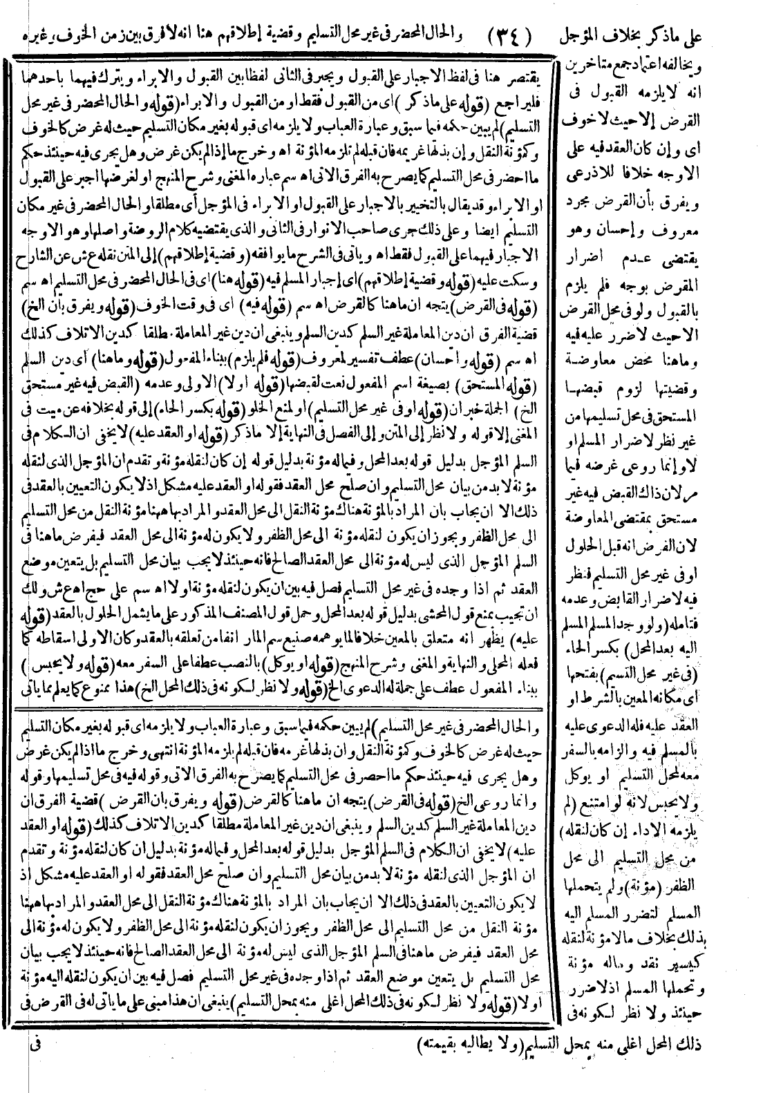 عَلَى مَا ذُكِرَ بِخِلَافِ الْمُؤَجَّلِ وَالْحَالِّ الْمُحْضَرِ فِي غَيْرِ مَحَلِّ التَّسْلِيمِ.