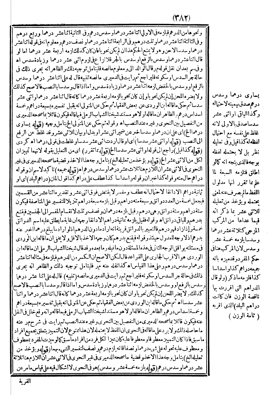 ـــــــــــــــــــــــــــــQوَنَحْوِهَا مِنْ الدِّرْهَمِ فَيَلْزَمُهُ فِي الْأُولَى اثْنَا عَشَرَ دِرْهَمًا وَسُدُسُ دِرْهَمٍ، وَفِي الثَّانِيَةِ اثْنَا عَشَرَ دِرْهَمًا وَرُبْعُ دِرْهَمٍ وَفِي الثَّالِثَةِ اثْنَا عَشَرَ دِرْهَمًا، وَفِي الرَّابِعَةِ اثْنَا عَشَرَ دِرْهَمًا وَنِصْفُ دِرْهَمٍ وَمَعْلُومٌ أَنَّهُ فِي قَوْلِهِ: اثْنَا عَشَرَ دِرْهَمًا وَسُدُسًا لَاحِنٌ، وَهُوَ لَا يَمْنَعُ الْحُكْمَ هَذَا إنْ لَمْ يَكُنْ نَحْوِيًّا فَإِنْ كَانَ كَذَلِكَ لَزِمَهُ أَرْبَعَةُ عَشَرَ دِرْهَمًا أَمَّا لَوْ قَالَ اثْنَا عَشَرَ دِرْهَمًا وَسُدُسٌ بِالرَّفْعِ، أَوْ سُدُسٍ بِالْجَرِّ، فَلَا نِزَاعَ فِي لُزُومِ اثْنَيْ عَشَرَ دِرْهَمًا وَزِيَادَةِ سُدُسٍ. اهـ. وَفِي سم بَعْدَ أَنْ نُقِلَ قَوْلُ م ر قَالَ الْوَالِدُ إلَيَّ وَمَعْلُومٌ مَا نَصُّهُ فَلْيُتَأَمَّلْ تَوْجِيهُ ذَلِكَ، وَالظَّاهِرُ أَنَّهُ يَجْرِي ذَلِكَ فِي حَالَةِ جَرِّ السُّدُسِ أَوْ سُكُونِهِ فَلْيُرَاجَعْ ثُمَّ رَأَيْت فِي الدَّمِيرِيِّ مَا نَصُّهُ
