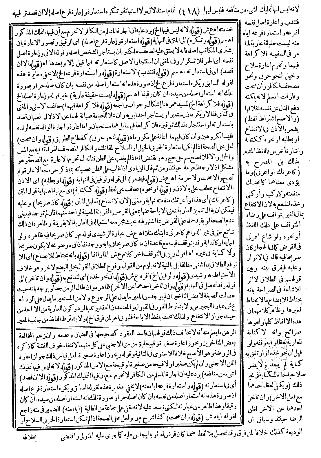 ـــــــــــــــــــــــــــــSالرَّهْنِ مَا يُعْلَمُ مِنْهُ أَنَّهُ لَا يُخَالِفُ ذَلِكَ قَوْلَهُمْ أَنَّ فَاسِدَ الْعُقُودِ كَصَحِيحِهَا فِي الضَّمَانِ وَعَدَمِهِ وَإِنْ زَعَمَ الْمُخَالَفَةَ بَعْضُ الْمُتَأَخِّرِينَ وَيَجُوزُ إعَارَةُ صَغِيرَةٍ وَقَبِيحَةٍ يُؤْمَنُ مِنْ الْأَجْنَبِيِّ عَلَى كُلٍّ مِنْهُمَا الِانْتِفَاءُ خَوْفَ الْفِتْنَةِ كَمَا ذَكَرَهُ فِي الرَّوْضَةِ وَهُوَ الْأَصَحُّ خِلَافًا لِلْإِسْنَوِيِّ فِي الثَّانِيَةِ اهـ وَقَوْلُهُ وَيَجُوزُ إعَارَةُ صَغِيرَةٍ إلَخْ لَعَلَّ قِيَاسَ ذَلِكَ جَوَازُ إعَارَةِ الْقِنِّ الْأَجْنَبِيِّ، وَإِنْ لَمْ يَكُنْ صَغِيرًا وَلَا قَبِيحًا مِنْ صَغِيرَةٍ أَوْ قَبِيحَةٍ مَعَ إلَّا مِنْ الْمَذْكُورِ. (قَوْلُهُ لِأَنَّهُ لَيْسَ فِيهَا تَمْلِيكٌ لِشَيْءٍ مِنْ مَنَافِعِهِ) يُرَدُّ عَلَيْهِ أَنَّ إجَارَةَ الْمُسْلِمِ مِنْ الْكَافِرِ لَا تَحْرُمُ مَعَ أَنَّ فِيهَا التَّمْلِيكَ الْمَذْكُورَ (قَوْلُهُ إلَّا إنْ قَصَدَ) أَيْ فِي اسْتِعَارَتِهِ. (قَوْلُهُ وَاسْتِعَارَةُ فَرْعِهِ إيَّاهُ مِنْهُ) لَا يَخْفَى مُغَايَرَةُ هَذِهِ لِقَوْلِهِ السَّابِقِ وَيُكْرَهُ اسْتِعَارَةُ فَرْعِ أَصْلِهِ إذْ صُورَةُ هَذِهِ أَنَّهُ اسْتَعَارَ أَصْلَهُ مِنْ نَفْسِهِ بِأَنْ كَانَ أَصْلُهُ حُرًّا وَصُورَةُ تِلْكَ أَنَّهُ اسْتَعَارَ أَصْلَهُ مِنْ سَيِّدِهِ بِأَنْ كَانَ رَقِيقًا وَهَذَا ظَاهِرٌ مِنْ عِبَارَتِهِ لَكِنِّي نَبَّهْت عَلَيْهِ لِأَنَّهُ خَفِيٌّ عَلَى جَمَاعَةٍ مِنْ الطَّلَبَةِ. (قَوْلُهُ إيَّاهُ مِنْهُ) الضَّمِيرُ فِي مِنْهُ رَاجِعٌ لِقَوْلِهِ إيَّاهُ ش. (قَوْلُهُ وَإِنْ صَحَّتْ) كَذَا شَرْحُ م ر وَلَعَلَّ مَحَلَّ الصِّحَّةِ إذَا لَمْ تَكُنْ اسْتِعَارَةُ الْحَرْبِيِّ السِّلَاحَ أَوْ