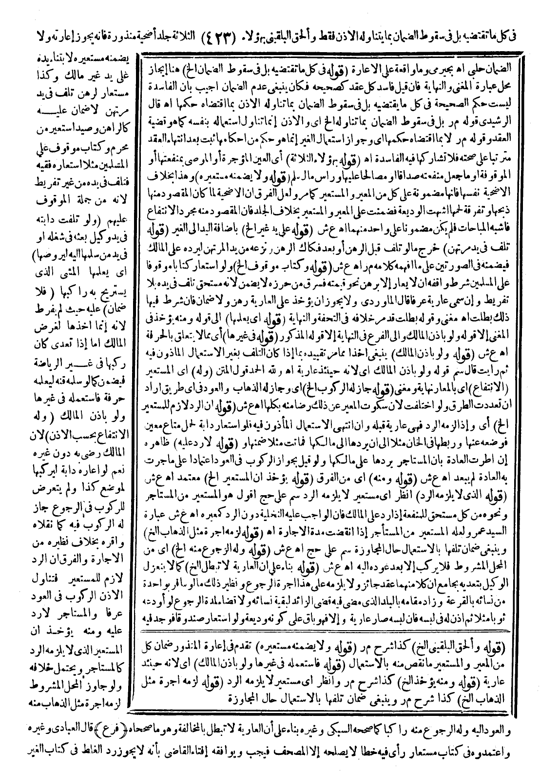 ـــــــــــــــــــــــــــــQالضَّمَانِ حَلَبِيٌّ اهـ بُجَيْرِمِيٌّ وَمَا وَاقِعَةٌ عَلَى الْإِعَارَةِ.
