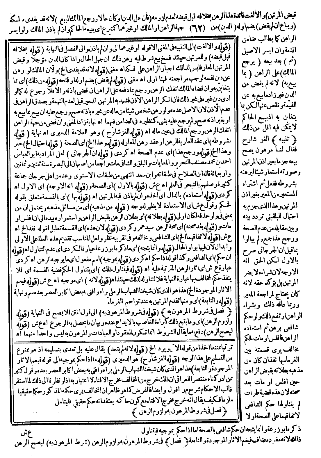 (تَنْبِيهٌ) أَلْغَزَ شَارِحٌ فَقَالَ لَنَا مَرْهُونٌ يَصِحُّ بَيْعُهُ جَزْمًا بِغَيْرِ إذْنِ الْمُرْتَهِنِ وَصُورَتُهُ اسْتَعَارَ شَيْئًا لِيَرْهَنَهُ بِشُرُوطِهِ فَفَعَلَ ثُمَّ اشْتَرَاهُ الْمُسْتَعِيرُ مِنْ الْمُعِيرِ بِغَيْرِ إذْنِ الْمُرْتَهِنِ وَهَذَا الَّذِي جَزَمَ بِهِ احْتِمَالٌ لِلْبُلْقِينِيِّ تَرَدَّدَ بَيْنَهُ وَبَيْنَ مُقَابِلِهِ مِنْ عَدَمِ الصِّحَّةِ وَرَجَّحَ هَذَا جَمْعٌ وَلَمْ يُبَالُوا بِمَا قِيلَ إنَّ الْجُرْجَانِيَّ صَرَّحَ بِالْأَوَّلِ لَكِنَّ الْحَقَّ أَنَّهُ الْأَوْجَهُ؛ لِأَنَّ شِرَاءَهُ لَا يَضُرُّ الْمُرْتَهِنَ بَلْ يُؤَكِّدُ حَقَّهُ؛ لِأَنَّهُ كَانَ يَحْتَاجُ لِمُرَاجَعَةِ الْمُعِيرِ وَرُبَّمَا عَاقَهُ ذَلِكَ وَبِشِرَاءِ الرَّاهِنِ ارْتَفَعَ ذَلِكَ وَلَوْ حَكَمَ شَافِعِيٌّ بِرَهْنٍ ثُمَّ اسْتَعَادَهُ الرَّاهِنُ فَأَفْلَسَ أَوْ مَاتَ فَحَكَمَ مُخَالِفٌ يَرَى قَسَمَتْهُ بَيْنَ الْغُرَمَاءِ بِهَا نَفَذَ إنْ كَانَ مِنْ مَذْهَبِهِ بُطْلَانُهُ بِقَبْضِ الرَّاهِنِ حِينَ أَفْلَسَ أَوْ مَاتَ بَعْدَ صِحَّتِهِ؛ لِأَنَّ هَذِهِ قَضِيَّةٌ طَرَأَتْ لَمْ يَتَنَاوَلْهَا حُكْمُ الشَّافِعِيِّ لِاتِّفَاقِهِمَا عَلَى الصِّحَّةِ أَوْ لَا ذَكَرَهُ أَبُو زُرْعَةَ وَإِنَّمَا يُتَّجَهُ إنْ حَكَمَ شَافِعِيٌّ بِالصِّحَّةِ أَمَّا إذَا حَكَمَ بِمُوجَبِهِ فَيَتَنَاوَلُ ذَلِكَ؛ لِأَنَّهُ مُفْرَدٌ مُضَافٌ فَيَعُمُّ الْآثَارَ الْمَوْجُودَةَ وَالتَّابِعَةَ.