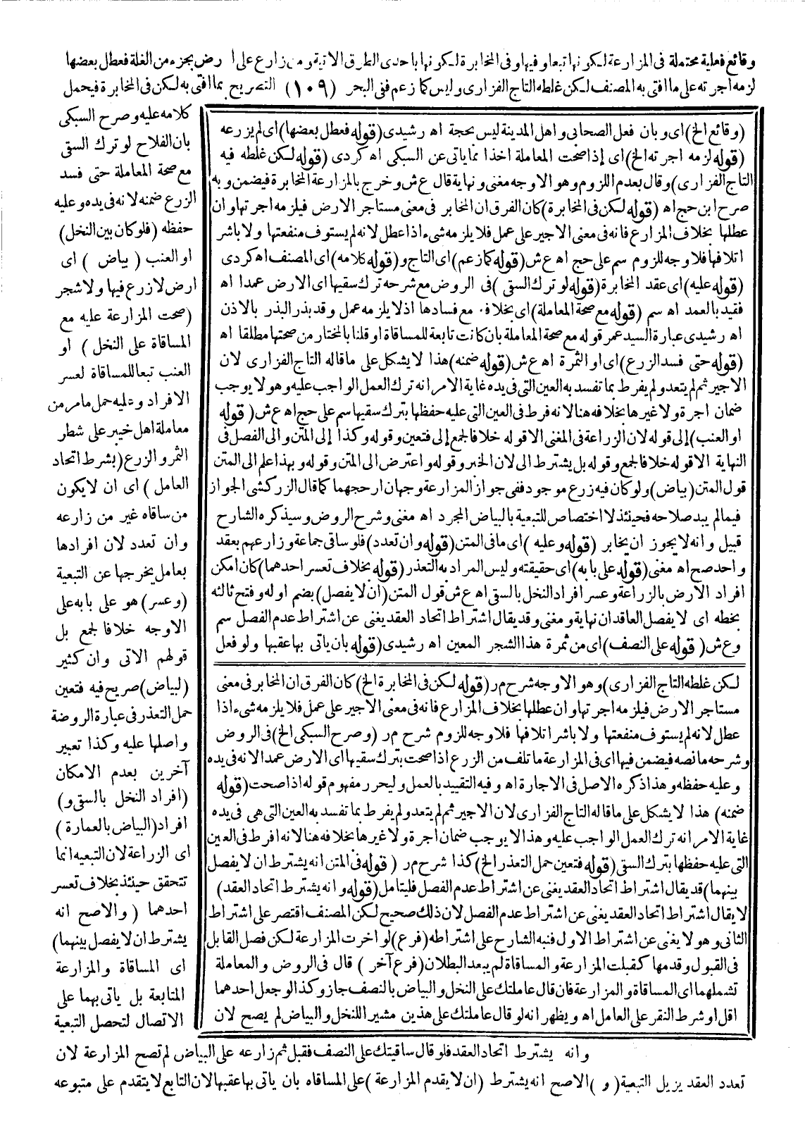 وَقَائِعُ فِعْلِيَّةٌ مُحْتَمَلَةٌ فِي الْمُزَارَعَةِ لِكَوْنِهَا تَبَعًا وَفِيهَا وَفِي الْمُخَابَرَةِ لِكَوْنِهَا بِإِحْدَى الطُّرُقِ الْآتِيَةِ وَمَنْ زَارَعَ عَلَى أَرْضٍ بِجُزْءٍ مِنْ الْغَلَّةِ فَعَطَّلَ بَعْضَهَا لَزِمَهُ أُجْرَتُهُ عَلَى مَا أَفْتَى بِهِ الْمُصَنِّفُ، لَكِنْ غَلَّطَهُ التَّاجُ الْفَزَارِيّ وَلَيْسَ كَمَا زَعَمَ فَفِي الْبَحْرِ التَّصْرِيحُ بِمَا أَفْتَى بِهِ لَكِنْ فِي الْمُخَابَرَةِ فَيُحْمَلُ كَلَامُهُ عَلَيْهِ.