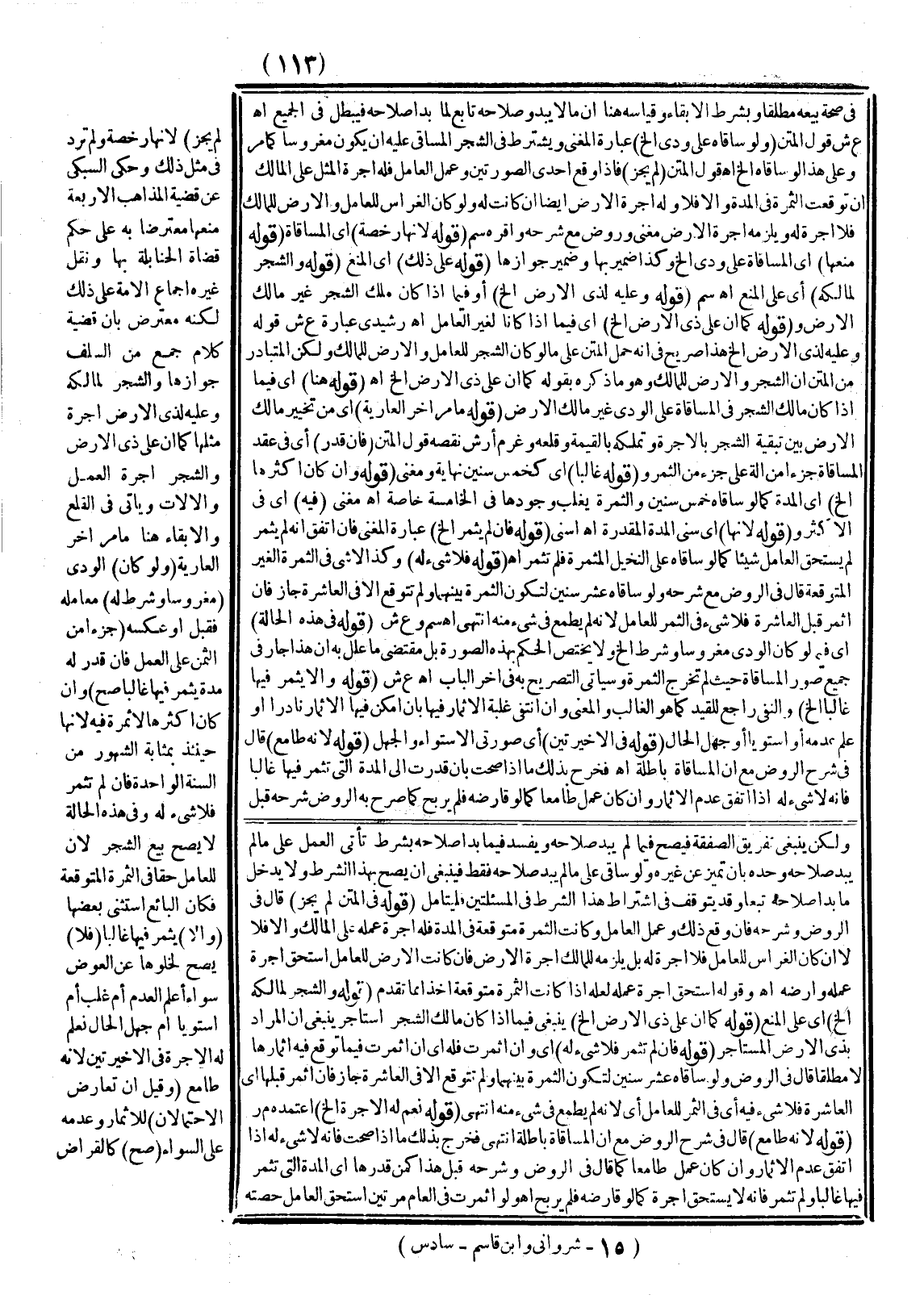 (قَوْلُهُ هُنَا) أَيْ فِيمَا إذَا كَانَ مَالِكُ الشَّجَرِ فِي الْمُسَاقَاةِ عَلَى الْوَدِيِّ غَيْرَ مَالِكِ الْأَرْضِ (قَوْلُهُ مَا مَرَّ آخِرَ الْعَارِيَّةِ) أَيْ مِنْ تَخْيِيرِ مَالِكِ الْأَرْضِ بَيْنَ تَبْقِيَةِ الشَّجَرِ بِالْأُجْرَةِ وَتَمَلُّكِهِ بِالْقِيمَةِ وَقَلْعِهِ وَغُرْمِ أَرْشِ نَقْصِهِ قَوْلُ الْمَتْنِ (فَإِنْ قُدِّرَ) أَيْ فِي عَقْدِ الْمُسَاقَاةِ جُزْءًا مِنْ آلَةٍ عَلَى جَزْءٍ مِنْ الثَّمَرِ وَ (قَوْلُهُ غَالِبًا) أَيْ كَخَمْسِ سِنِينَ نِهَايَةٌ وَمُغْنِي (قَوْلُهُ وَإِنْ كَانَ أَكْثَرُهَا إلَخْ) أَيْ الْمُدَّةِ كَمَا لَوْ سَاقَاهُ خَمْسَ سِنِينَ وَالثَّمَرُ يَغْلِبُ وُجُودُهَا فِي الْخَامِسَةِ خَاصَّةً اهـ مُغْنِي (قَوْلُهُ فِيهِ) أَيْ فِي الْأَكْثَرِ وَ (قَوْلُهُ لِأَنَّهَا) أَيْ سِنِي الْمُدَّةِ الْمُقَدَّرَةِ اهـ أَسْنَى (قَوْلُهُ فَإِنْ لَمْ يُثْمِرْ إلَخْ) عِبَارَةُ الْمُغْنِي فَإِنْ اتَّفَقَ أَنَّهُ لَمْ يُثْمِرْ لَمْ يَسْتَحِقَّ الْعَامِلُ شَيْئًا كَمَا لَوْ سَاقَاهُ عَلَى النَّخِيلِ الْمُثْمِرَةِ فَلَمْ تُثْمِرْ اهـ.