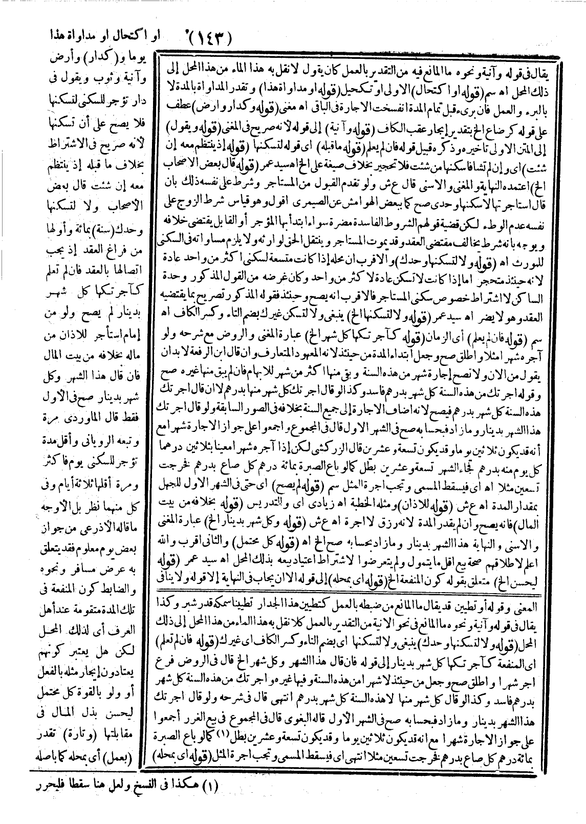 أَوْ اكْتِحَالِ أَوْ مُدَاوَاةِ هَذَا يَوْمًا وَ (كَدَارٍ) وَأَرْضٍ وَآنِيَةٍ وَثَوْبٍ وَيَقُولُ فِي دَارٍ تُؤَجَّرُ لِلسُّكْنَى لِتَسْكُنَهَا فَلَا يَصِحُّ عَلَى أَنْ تَسْكُنَهَا؛ لِأَنَّهُ صَرِيحٌ فِي الِاشْتِرَاطِ بِخِلَافِ مَا قَبْلَهُ إذْ يَنْتَظِمُ مَعَهُ إنْ شِئْت قَالَ بَعْضُ الْأَصْحَابِ وَلَا لِتَسْكُنَهَا وَحْدَك (سَنَةً) بِمِائَةٍ وَأَوَّلُهَا مِنْ فَرَاغِ الْعَقْدِ إذْ يَجِبُ اتِّصَالُهَا بِالْعَقْدِ فَإِنْ لَمْ تُعْلَمْ كَآجَرْتُكَهَا كُلَّ شَهْرٍ بِدِينَارٍ لَمْ يَصِحَّ، وَلَوْ مِنْ إمَامٍ اسْتَأْجَرَ لِلْأَذَانِ مِنْ مَالِهِ بِخِلَافِهِ مِنْ بَيْتِ الْمَالِ فَإِنْ قَالَ هَذَا الشَّهْرَ وَكُلَّ شَهْرٍ بِدِينَارٍ صَحَّ فِي الْأَوَّلِ فَقَطْ قَالَ الْمَاوَرْدِيُّ مَرَّةً وَتَبِعَهُ الرُّويَانِيُّ وَأَقَلُّ مُدَّةٍ تُؤَجَّرُ لِلسُّكْنَى يَوْمٌ فَأَكْثَرُ وَمَرَّةٌ أَقَلُّهَا ثَلَاثَةُ أَيَّامٍ وَفِي كُلٍّ مِنْهُمَا نَظَرٌ بَلْ الْأَوْجَهُ مَا قَالَهُ الْأَذْرَعِيُّ مِنْ جَوَازِ بَعْضِ يَوْمٍ مَعْلُومٍ فَقَدْ يَتَعَلَّقُ بِهِ غَرَضُ مُسَافِرٍ وَنَحْوِهِ، وَالضَّابِطُ كَوْنُ الْمَنْفَعَةِ فِي تِلْكَ الْمُدَّةِ مُتَقَوِّمَةً عِنْدَ أَهْلِ الْعُرْفِ أَيْ لِذَلِكَ الْمَحَلِّ، لَكِنْ هَلْ يُعْتَبَرُ كَوْنُهُمْ يَعْتَادُونَ إيجَارَ مِثْلِهِ بِالْفِعْلِ أَوْ بِالْقُوَّةِ كُلٌّ مُحْتَمَلٌ لِيَحْسُنَ بِذَلِكَ الْمَالِ فِي مُقَابَلَتِهَا