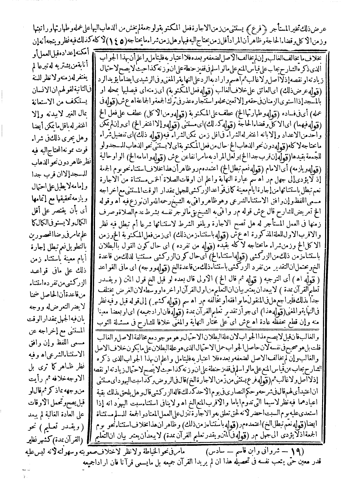 (قَوْلُهُ بِاسْتِثْنَاءِ زَمَنِ ذَلِكَ) أَيْ زَمَنِ فِعْلِ الْمَكْتُوبَةِ إلَخْ وَزَمَنِ الْأَكْلِ إلَخْ وَزَمَنِ شِرَاءِ مَا يَحْتَاجُهُ لِأَكْلِهِ بِقَيْدِهِ (قَوْلُهُ مِنْ تَفَرُّدِهِ) أَيْ حَالَ كَوْنِ الْقَوْلِ بِالْبُطْلَانِ بِاسْتِثْنَاءِ زَمَنِ ذَلِكَ مِنْ تَفَرُّدِ الزَّرْكَشِيّ (قَوْلُهُ اسْتِثْنَاءً إلَخْ) أَيْ حَالَ كَوْنِ الزَّرْكَشِيّ مُسْتَثْنِيًا لِذَلِكَ مِنْ قَاعِدَةٍ إلَخْ وَيُحْتَمَلُ أَنَّ التَّقْدِيرَ مِنْ تَفَرُّدِ الزَّرْكَشِيّ بِاسْتِثْنَاءِ ذَلِكَ مِنْ قَاعِدَةٍ إلَخْ (قَوْلُهُ وَوُجِّهَ) أَيْ مَا فِي الْقَوَاعِدِ (قَوْلُهُ انْتَهَى) أَيْ التَّوْجِيهُ (قَوْلُهُ ثُمَّ قَالَ إلَخْ) الْأَوْلَى قَالَ بَعْدَهُ لَوْ قِيلَ إلَخْ.