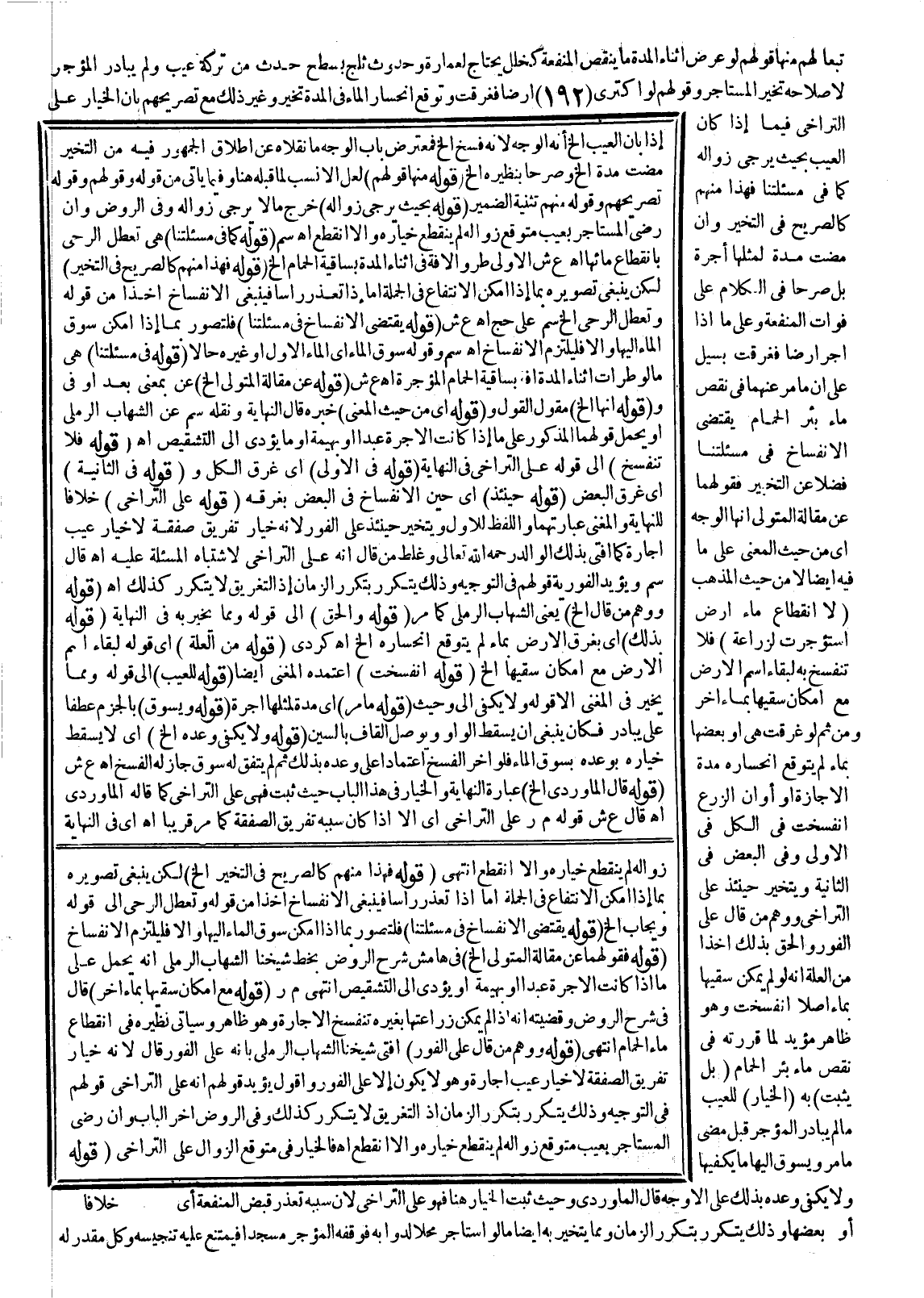 ـــــــــــــــــــــــــــــSزَوَالَهُ لَمْ يَنْقَطِعْ خِيَارُهُ وَإِلَّا انْقَطَعَ انْتَهَى (قَوْلُهُ فَهَذَا مِنْهُمْ كَالصَّرِيحِ فِي التَّخَيُّرِ إلَخْ) لَكِنْ يَنْبَغِي تَصْوِيرُهُ بِمَا إذَا أَمْكَنَ الِانْتِفَاعُ فِي الْجُمْلَةِ أَمَّا إذَا تَعَذَّرَ رَأْسًا فَيَنْبَغِي الِانْفِسَاخُ أَخْذًا مِنْ قَوْلِهِ وَتَعَطُّلُ الرَّحَى إلَى قَوْلِهِ وَيُجَابُ إلَخْ (قَوْلُهُ يَقْتَضِي الِانْفِسَاخَ فِي مَسْأَلَتِنَا) فَلْتُّصَوَّرْ بِمَا إذَا أَمْكَنَ سَوْقُ الْمَاءِ إلَيْهَا وَإِلَّا فَلْيُلْتَزَمْ الِانْفِسَاخُ (قَوْلُهُ فَقَوْلُهُمَا عَنْ مَقَالَةِ الْمُتَوَلِّي إلَخْ) فِي هَامِشِ شَرْحِ الرَّوْضِ بِخَطِّ شَيْخِنَا الشِّهَابِ الرَّمْلِيِّ أَنَّهُ يُحْمَلُ عَلَى مَا إذَا كَانَتْ الْأُجْرَةُ عَبْدًا أَوْ بَهِيمَةً أَوْ يُؤَدِّي إلَى التَّشْقِيصِ انْتَهَى م ر. (قَوْلُهُ مَعَ إمْكَانِ سَقْيِهَا بِمَاءٍ آخَرَ) قَالَ فِي شَرْحِ الرَّوْضِ وَقَضِيَّتُهُ أَنَّهُ إذَا لَمْ يُمْكِنْ زِرَاعَتُهَا بِغَيْرِهِ تَنْفَسِخُ الْإِجَارَةُ وَهُوَ ظَاهِرٌ وَسَيَأْتِي نَظِيرُهُ فِي انْقِطَاعِ مَاءِ الْحَمَّامِ انْتَهَى (قَوْلُهُ وَوَهِمَ مَنْ قَالَ عَلَى الْفَوْرِ) أَفْتَى شَيْخُنَا الشِّهَابُ الرَّمْلِيُّ بِأَنَّهُ عَلَى الْفَوْرِ قَالَ لِأَنَّهُ خِيَارُ تَفْرِيقِ الصَّفْقَةِ لَا خِيَارُ عَيْبِ إجَارَةٍ وَهُوَ لَا يَكُونُ إلَّا عَلَى الْفَوْرِ وَأَقُولُ يُؤَيِّدُ قَوْلَهُمْ إنَّهُ عَلَى التَّرَاخِي قَوْلُهُمْ فِي التَّوْجِيهِ وَذَلِكَ يَتَكَرَّرُ بِتَكَرُّرِ الزَّمَانِ إذْ التَّفْرِيقُ لَا يَتَكَرَّرُ كَذَلِكَ وَفِي الرَّوْضِ آخِرَ الْبَابِ، وَإِنْ رَضِيَ الْمُسْتَأْجِرُ بِعَيْبٍ مُتَوَقَّعٍ زَوَالُهُ لَمْ يَنْقَطِعْ خِيَارُهُ وَإِلَّا انْقَطَعَ انْتَهَى فَالْخِيَارُ فِي مُتَوَقَّعِ الزَّوَالِ عَلَى التَّرَاخِي (قَوْلُهُ