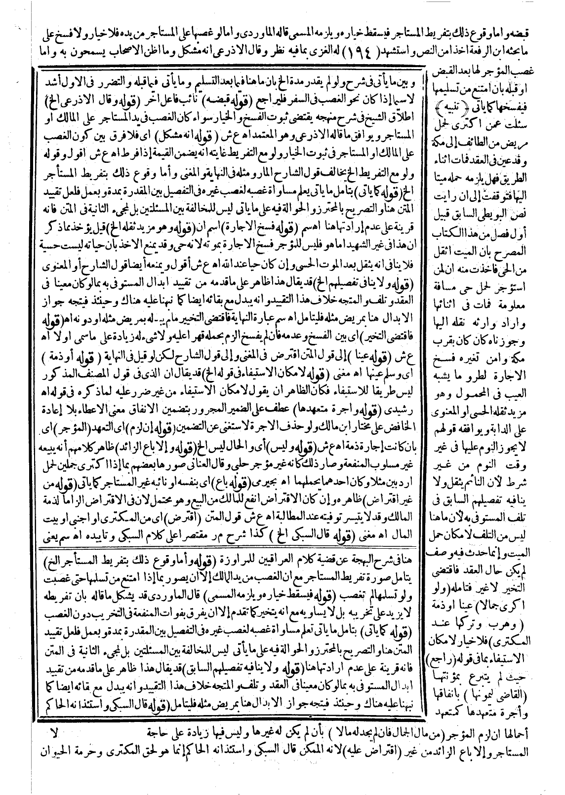 ـــــــــــــــــــــــــــــQوَبَيْنَ مَا يَأْتِي فِي شَرْحِ وَلَوْ لَمْ يُقَدِّرْ مُدَّةً إلَخْ بِأَنَّ مَا هُنَا فِيمَا بَعْدَ التَّسْلِيمِ وَمَا يَأْتِي فِيمَا قَبْلَهُ وَالتَّضَرُّرَ فِي الْأَوَّلِ أَشَدُّ لَا سِيَّمَا إذَا كَانَ نَحْوُ الْغَصْبِ فِي السَّفَرِ فَلْيُرَاجَعْ