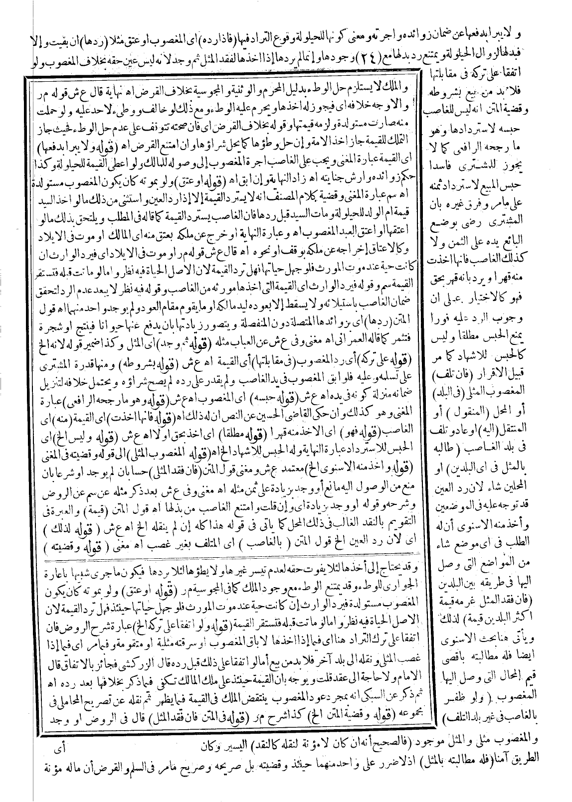 (قَوْلُهُ الْمَغْصُوبُ الْمِثْلِيُّ) إلَى قَوْلِهِ وَقَضِيَّتُهُ فِي الْمُغْنِي (قَوْلُهُ وَأَخَذَ مِنْهُ الْإِسْنَوِيُّ إلَخْ) مُعْتَمَدٌ ع ش وَمُغْنٍ قَوْلُ الْمَتْنِ (فَإِنْ فُقِدَ الْمِثْلِيُّ) حِسًّا بِأَنْ لَمْ يُوجَد أَوْ شَرْعًا بِأَنْ مَنَعَ مِنْ الْوُصُولِ إلَيْهِ مَانِعٌ أَوْ وُجِدَ بِزِيَادَةٍ عَلَى ثَمَنِ مِثْلِهِ اهـ مُغْنٍ وَفِي ع ش بَعْدَ ذِكْرِ مِثْلِهِ عَنْ سم عَنْ الرَّوْضِ وَشَرْحِهِ وَقَوْلُهُ أَوْ وُجِدَ بِزِيَادَةٍ أَيْ وَإِنْ قَلَّتْ وَامْتَنَعَ الْغَاصِبُ مِنْ بَذْلِهَا. اهـ قَوْلُ الْمَتْنِ (قِيمَةً) وَالْعِبْرَةُ فِي التَّقْوِيمِ بِالنَّقْدِ الْغَالِبِ فِي ذَلِكَ الْمَحَلِّ كَمَا يَأْتِي فِي قَوْلِهِ هَذَا كُلُّهُ إنْ لَمْ يَنْقُلْهُ إلَخْ. اهـ ع ش (قَوْلُهُ لِذَلِكَ) أَيْ؛ لِأَنَّ رَدَّ الْعَيْنِ إلَخْ