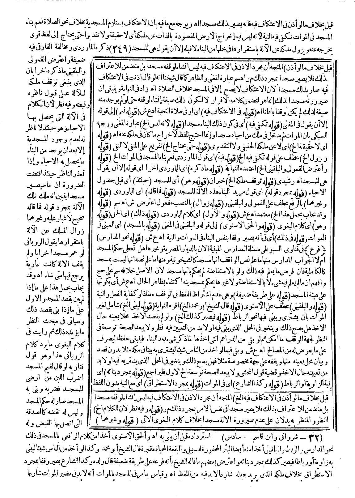ـــــــــــــــــــــــــــــSقِيلَ بِخِلَافِ مَا لَوْ أَذِنَ فِي الِاعْتِكَافِ فِيهِ إلَخْ) الْمُتَّجَهُ أَنَّ مُجَرَّدَ الْإِذْنِ فِي الِاعْتِكَافِ فِيهِ لَيْسَ إنْشَاءٌ لِوَقْفِهِ مَسْجِدًا بَلْ مُتَضَمِّنٌ لِلِاعْتِرَافِ بِذَلِكَ فَلَا يَصِيرُ مَسْجِدًا فِي نَفْسِ الْأَمْرِ بِمُجَرَّدِ ذَلِكَ م ر (قَوْلُهُ: وَفِيهِ نَظَرٌ؛ لِأَنَّ الْكَلَامَ إلَخْ) النَّظَرُ وَالْمُنْظَرُ بِهِ يَدُلَّانِ عَلَى عَدَمِ صَيْرُورَةِ الْآلَةِ مَسْجِدًا بِخِلَافِ كَلَامِ الْبَغَوِيّ الْآتِي (قَوْلُهُ: وَغَيْرُهُمَا)