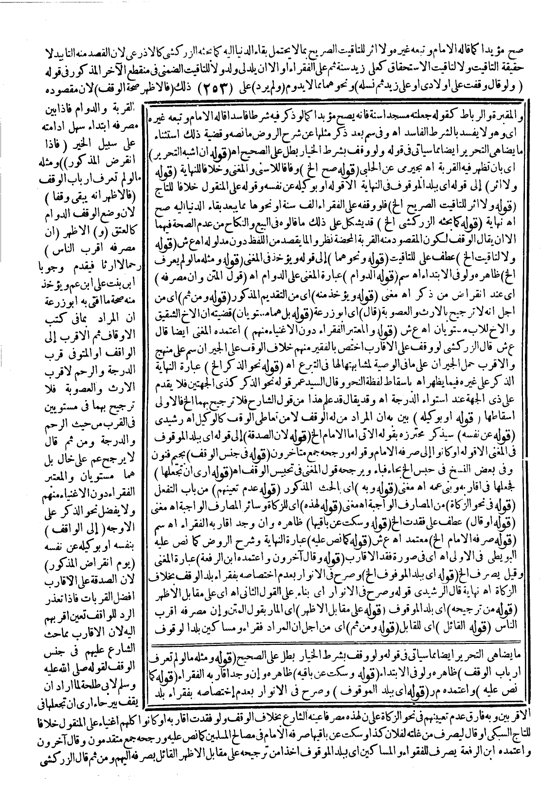 (قَوْلُهُ: وَنَحْوِهِمَا) إلَى قَوْلِهِ وَيُؤْخَذُ فِي الْمُغْنِي (قَوْلُهُ: وَمِثْلُهُ مَا لَوْ لَمْ يَعْرِفْ إلَخْ) ظَاهِرُهُ وَلَوْ فِي الِابْتِدَاءِ. اهـ. سم (قَوْلُهُ: الدَّوَامُ) عِبَارَةُ الْمُغْنِي عَلَى الدَّوَامِ. اهـ. قَوْلُ الْمَتْنِ (وَإِنَّ مَصْرِفَهُ) أَيْ عِنْدَ انْقِرَاضِ مَنْ ذُكِرَ اهـ مُغْنِي (قَوْلُهُ: وَيُؤْخَذُ مِنْهُ) أَيْ مِنْ التَّقْدِيمِ الْمَذْكُورِ (قَوْلُهُ: وَمِنْ ثَمَّ) أَيْ مِنْ أَجْلِ أَنَّهُ لَا تَرْجِيحَ بِالْإِرْثِ وَالْعُصُوبَةِ (قَالَ) أَيْ أَبُو زُرْعَةَ (قَوْلُهُ: بَلْ هُمَا مُسْتَوِيَانِ) قَضِيَّتُهُ أَنَّ الْأَخَ الشَّقِيقَ وَالْأَخَ لِلْأَبِ مُسْتَوِيَانِ. اهـ. ع ش (قَوْلُهُ: وَالْمُعْتَبَرُ الْفُقَرَاءُ دُونَ الْأَغْنِيَاءِ مِنْهُمْ) اعْتَمَدَهُ الْمُغْنِي أَيْضًا قَالَ ع ش قَالَ الزَّرْكَشِيُّ لَوْ وَقَفَ عَلَى الْأَقَارِبِ اخْتَصَّ بِالْفَقِيرِ مِنْهُمْ خِلَافُ الْوَقْفِ عَلَى الْجِيرَانِ سم عَلَى مَنْهَجٍ وَالْأَقْرَبُ حَمْلُ الْجِيرَانِ عَلَى مَا فِي الْوَصِيَّةِ لِمُشَابَهَتِهِ لَهَا فِي التَّبَرُّعِ اهـ. (قَوْلُهُ: نَحْوُ الذَّكَرِ إلَخْ) عِبَارَةُ النِّهَايَةِ الذَّكَرُ عَلَى غَيْرِهِ فِيمَا يَظْهَرُ. اهـ. بِإِسْقَاطِ لَفْظَةِ النَّحْوِ وَقَالَ السَّيِّدُ عُمَرَ قَوْلُهُ: نَحْوُ الذَّكَرِ كَذِي الْجِهَتَيْنِ فَلَا يُقَدَّمُ عَلَى ذِي الْجِهَةِ عِنْدَ اسْتِوَاءِ الدَّرَجَةِ. اهـ. وَقَدْ يُقَالُ قَدْ عُلِمَ هَذَا مِنْ قَوْلِ الشَّارِحِ فَلَا تَرْجِيحَ بِهِمَا إلَخْ فَالْأَوْلَى إسْقَاطُهَا (قَوْلُهُ: أَوْ بِوَكِيلِهِ) بَيَّنَ بِهِ أَنَّ الْمُرَادَ مَنْ لَهُ الْوَقْفُ لَا مَنْ تَعَاطَى الْوَقْفَ كَالْوَكِيلِ. اهـ. رَشِيدِيٌّ (قَوْلُهُ: عَنْ نَفْسِهِ) سَيَذْكُرُ مُحْتَرَزَهُ بِقَوْلِهِ الْآتِي، أَمَّا الْإِمَامُ إلَخْ.