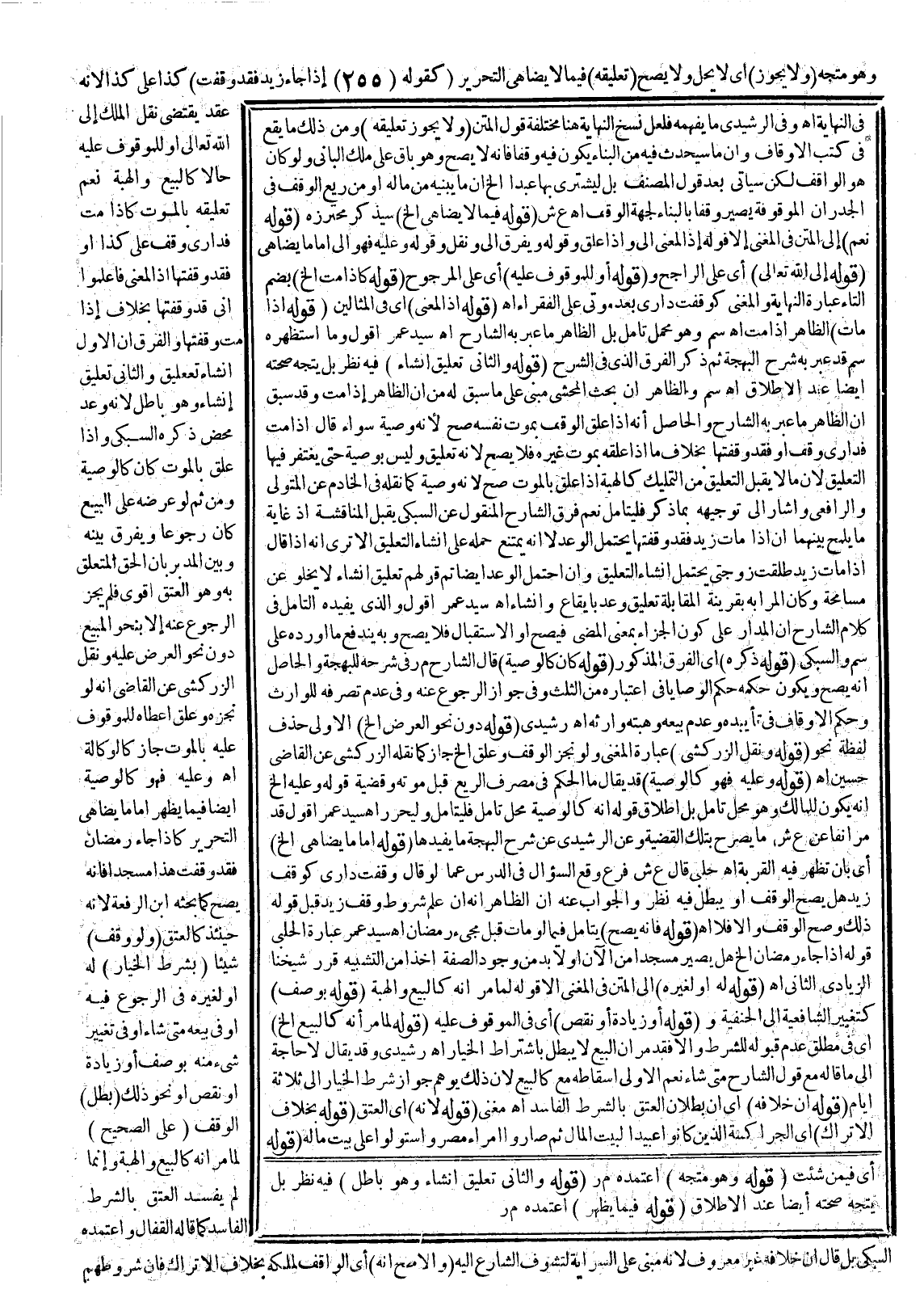 سَيِّدُ عُمَرَ أَقُولُ وَاَلَّذِي يُفِيدُهُ التَّأَمُّلُ فِي كَلَامِ الشَّارِحِ أَنَّ الْمَدَارَ عَلَى كَوْنِ الْجَزَاءِ بِمَعْنَى الْمُضِيِّ فَيَصِحُّ أَوْ الِاسْتِقْبَالِ فَلَا يَصِحُّ وَبِهِ يَنْدَفِعُ مَا أَوْرَدَهُ عَلَى سم وَالسُّبْكِيِّ (قَوْلُهُ: ذَكَرَهُ) أَيْ الْفَرْقَ الْمَذْكُورَ (قَوْلُهُ: كَانَ كَالْوَصِيَّةِ) قَالَ الشَّارِحُ م ر فِي شَرْحِهِ لِلْبَهْجَةِ وَالْحَاصِلُ أَنَّهُ يَصِحُّ وَيَكُونُ حُكْمُهُ حُكْمَ الْوَصَايَا فِي اعْتِبَارِهِ مِنْ الثُّلُثِ وَفِي جَوَازِ الرُّجُوعِ عَنْهُ وَفِي عَدَمِ صَرْفِهِ لِلْوَارِثِ وَحُكْمِ الْأَوْقَافِ فِي تَأْيِيدِهِ وَعَدَمِ بَيْعِهِ وَهِبَتِهِ وَإِرْثِهِ. اهـ. رَشِيدِيٌّ (قَوْلُهُ: دُونَ نَحْوِ الْعَرْضِ إلَخْ) الْأَوْلَى حَذْفُ لَفْظَةِ نَحْوِ (قَوْلُهُ: وَنَقَلَ الزَّرْكَشِيُّ إلَخْ) عِبَارَةُ الْمُغْنِي وَلَوْ نَجَّزَ الْوَقْفَ وَعَلَّقَ إلَخْ جَازَ كَمَا نَقَلَهُ الزَّرْكَشِيُّ عَنْ الْقَاضِي حُسَيْنٍ. اهـ. (قَوْلُهُ: وَعَلَيْهِ فَهُوَ كَالْوَصِيَّةِ) قَدْ يُقَالُ مَا الْحُكْمُ فِي مَصْرِفِ الرِّيعِ قَبْلَ مَوْتِهِ وَقَضِيَّةُ قَوْلِهِ وَعَلَيْهِ إلَخْ أَنَّهُ يَكُونُ لِلْمَالِكِ وَهُوَ مَحَلُّ تَأَمُّلٍ بَلْ إطْلَاقُ قَوْلِهِ أَنَّهُ كَالْوَصِيَّةِ مَحَلُّ تَأَمُّلٍ فَلْيُتَأَمَّلْ وَلْيُحَرَّرْ. اهـ. سَيِّدُ عُمَرَ أَقُولُ قَدْ مَرَّ آنِفًا عَنْ ع ش مَا يُصَرِّحُ بِتِلْكَ الْقَضِيَّةِ وَعَنْ الرَّشِيدِيِّ عَنْ شَرْحِ الْبَهْجَةِ مَا يُفِيدُهَا.