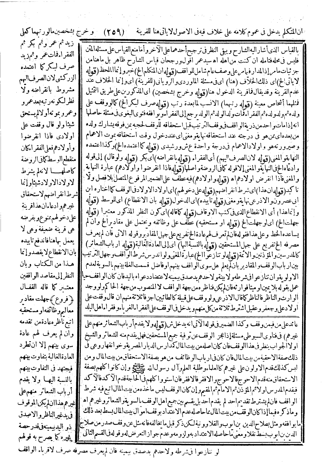 ـــــــــــــــــــــــــــــQبِالْقِيَاسِ الَّذِي أَشَارَ إلَيْهِ الشَّارِحُ وَيَبْقَى النَّظَرُ فِي تَرْجِيحِ أَحَدِهِمَا عَلَى الْآخَرِ، وَأَمَّا مَنْعُ الْقِيَاسِ عَلَى مَسْأَلَةِ الْمَتْنِ فَلَيْسَ فِي مَحَلِّهِ فَتَأَمَّلْهُ إنْ كُنْت مِنْ أَهْلِهِ. اهـ. سَيِّدُ عُمَرَ أَقُولُ وَرُجْحَانُ قِيَاسِ الشَّارِحِ ظَاهِرٌ بَلْ مَا هُنَا مِنْ جُزْئِيَّاتِ مَا مَرَّ إذْ الْمَدَارُ فِيمَا مَرَّ عَلَى وَصْفٍ عَامٍّ شَامِلٍ لِلْوَاقِفِ