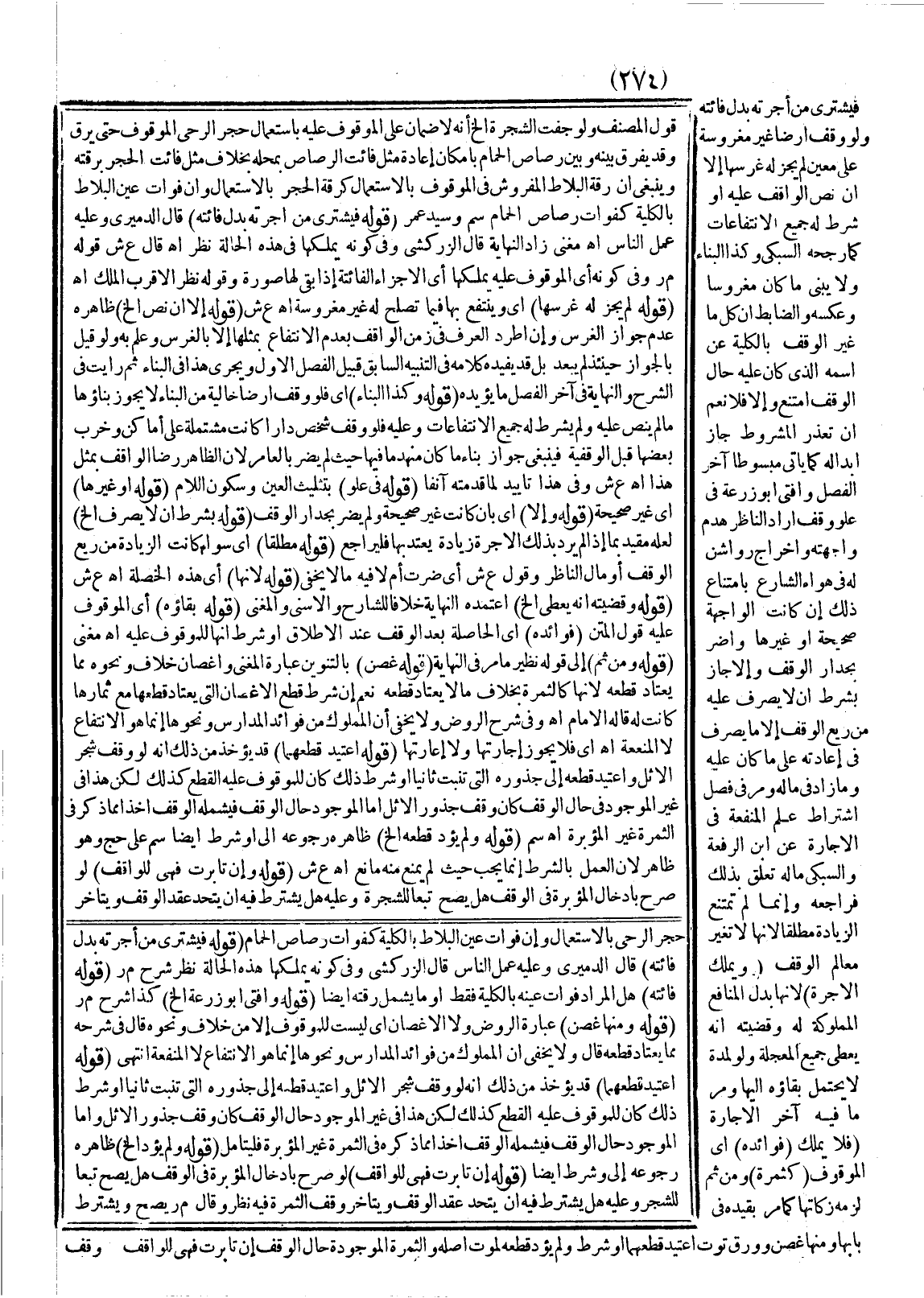 ـــــــــــــــــــــــــــــQقَوْلِ الْمُصَنِّفِ وَلَوْ جَفَّتْ الشَّجَرَةُ إلَخْ أَنَّهُ لَا ضَمَانَ عَلَى الْمَوْقُوفِ عَلَيْهِ بِاسْتِعْمَالِ حَجَرِ الرَّحَى الْمَوْقُوفِ حَتَّى يَرِقَّ وَقَدْ يُفَرَّقُ بَيْنَهُ وَبَيْنَ رَصَاصِ الْحَمَّامِ بِإِمْكَانِ إعَادَةِ مِثْلِ فَائِتِ الرَّصَاصِ بِمَحَلِّهِ بِخِلَافِ مِثْلِ فَائِتِ الْحَجَرِ بِرِقَّتِهِ وَيَنْبَغِي أَنَّ رِقَّةَ الْبَلَاطِ الْمَفْرُوشِ فِي الْمَوْقُوفِ بِالِاسْتِعْمَالِ كَرِقَّةِ الْحَجَرِ بِالِاسْتِعْمَالِ وَأَنَّ فَوَاتَ عَيْنِ الْبَلَاطِ بِالْكُلِّيَّةِ كَفَوَاتِ رَصَاصِ الْحَمَّامِ سم وَسَيِّدٌ عُمَرُ