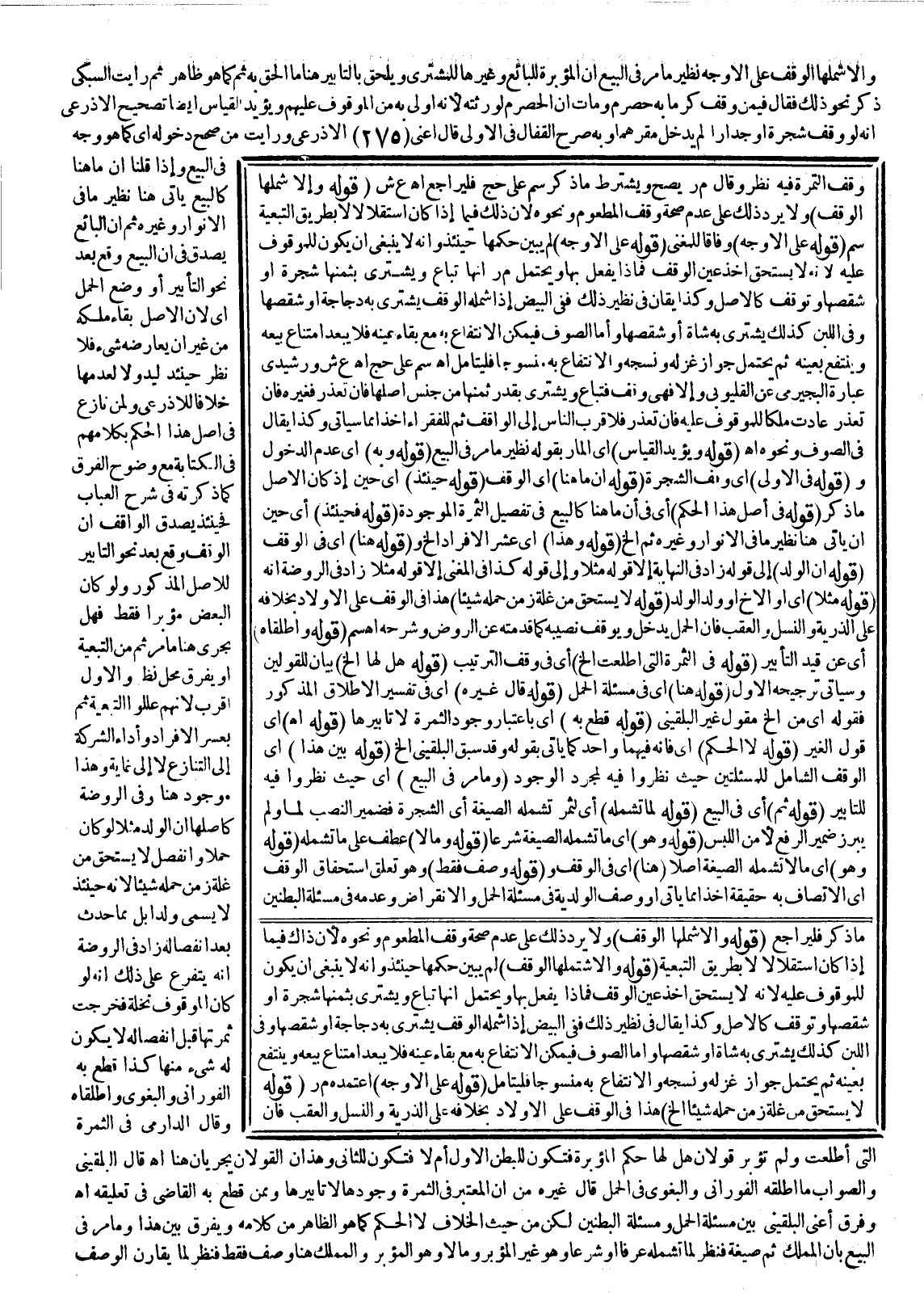 ثُمَّ رَأَيْت السُّبْكِيَّ ذَكَرَ نَحْوَ ذَلِكَ فَقَالَ فِيمَنْ وَقَفَ كَرْمًا بِهِ حِصْرِمٌ وَمَاتَ أَنَّ الْحِصْرِمَ لِوَرَثَتِهِ؛ لِأَنَّهُ أَوْلَى بِهِ مِنْ الْمَوْقُوفِ عَلَيْهِمْ وَيُؤَيِّدُ الْقِيَاسَ أَيْضًا تَصْحِيحُ الْأَذْرَعِيِّ أَنَّهُ لَوْ وَقَفَ شَجَرَةً أَوْ جِدَارًا لَمْ يَدْخُلْ مَقَرُّهُمَا.