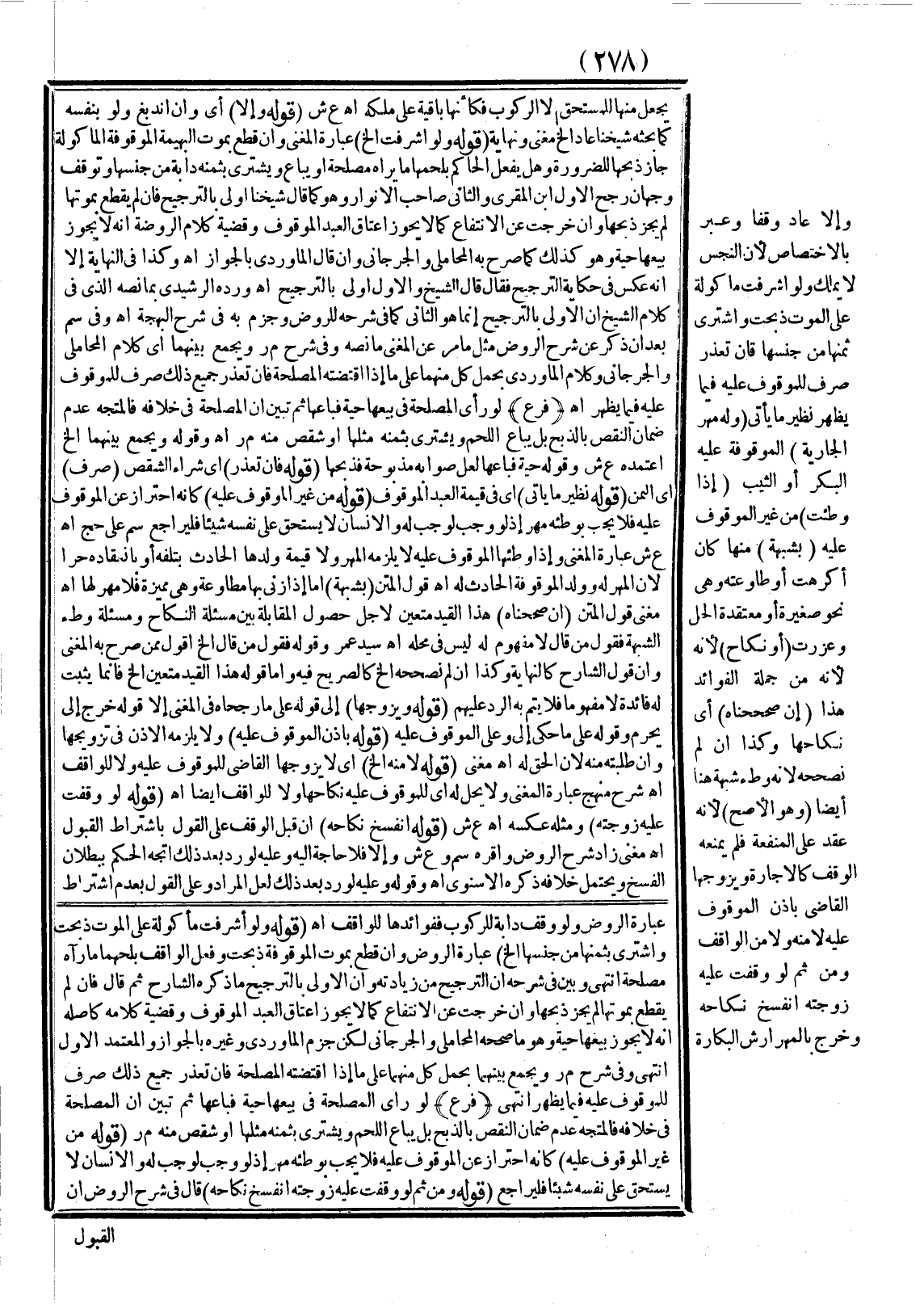قَوْلُ الْمَتْنِ (إنْ صَحَّحْنَاهُ) هَذَا الْقَيْدُ مُتَعَيِّنٌ لِأَجْلِ حُصُولِ الْمُقَابَلَةِ بَيْنَ مَسْأَلَةِ النِّكَاحِ وَمَسْأَلَةِ وَطْءِ الشُّبْهَةِ فَقَوْلُ مَنْ قَالَ لَا مَفْهُومَ لَهُ لَيْسَ فِي مَحَلِّهِ اهـ سَيِّدٌ عُمَرُ وَقَوْلُهُ فَقَوْلُ مَنْ قَالَ إلَخْ أَقُولُ مِمَّنْ صَرَّحَ بِهِ الْمُغْنِي وَأَنَّ قَوْلَ الشَّارِحِ كَالنِّهَايَةِ وَكَذَا إنْ لَمْ نُصَحِّحْهُ إلَخْ كَالصَّرِيحِ فِيهِ وَأَمَّا قَوْلُهُ هَذَا الْقَيْدُ مُتَعَيِّنٌ إلَخْ فَإِنَّمَا يَثْبُتُ لَهُ فَائِدَةً لَا مَفْهُومًا فَلَا يَتِمُّ بِهِ الرَّدُّ عَلَيْهِمْ (قَوْلُهُ وَيُزَوِّجُهَا) إلَى قَوْلِهِ عَلَى مَا رَجَّحَاهُ فِي الْمُغْنِي إلَّا قَوْلَهُ خَرَجَ إلَى يَحْرُمُ وَقَوْلُهُ عَلَى مَا حَكَى إلَى وَعَلَى الْمَوْقُوفِ عَلَيْهِ (قَوْلُهُ: بِإِذْنِ الْمَوْقُوفِ عَلَيْهِ) وَلَا يَلْزَمُهُ الْإِذْنُ فِي تَزْوِيجِهَا وَإِنْ طَلَبَتْهُ مِنْهُ؛ لِأَنَّ الْحَقَّ لَهُ اهـ مُغْنِي (قَوْلُهُ: لَا مِنْهُ إلَخْ) أَيْ: لَا يُزَوِّجُهَا الْقَاضِي الْمَوْقُوفَ عَلَيْهِ وَلَا لِلْوَاقِفِ اهـ شَرْحُ مَنْهَجِ عِبَارَةِ الْمُغْنِي وَلَا يَحِلُّ لَهُ أَيْ: لِلْمَوْقُوفِ عَلَيْهِ نِكَاحُهَا وَلَا لِلْوَاقِفِ أَيْضًا اهـ (قَوْلُهُ: لَوْ وُقِفَتْ عَلَيْهِ زَوْجَتُهُ) وَمِثْلُهُ عَكْسُهُ اهـ ع ش