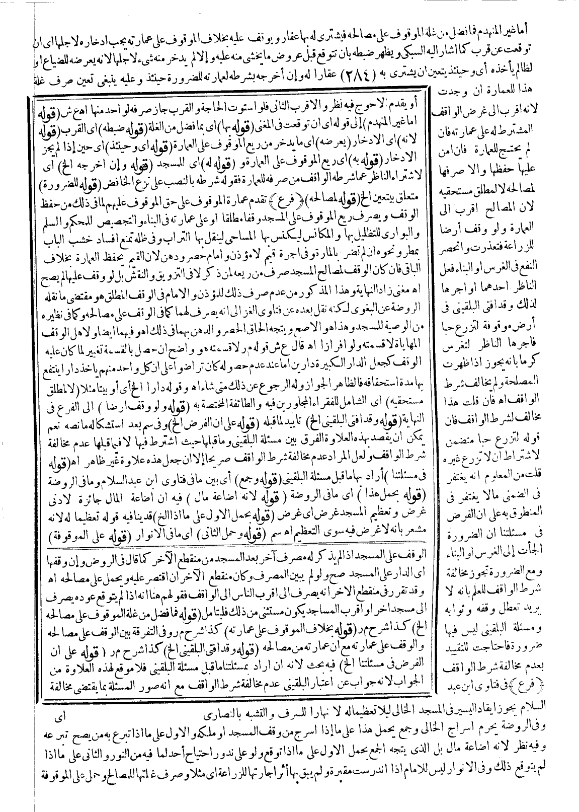 ـــــــــــــــــــــــــــــSالْوَقْفَ عَلَى الْمَسْجِدِ إذَا لَمْ يُذْكَرْ لَهُ مَصْرِفٌ آخَرُ بَعْدَ الْمَسْجِدِ مِنْ مُنْقَطِعِ الْآخِرِ كَمَا قَالَ فِي الرَّوْضِ وَإِنْ وَقَفَهَا أَيْ الدَّارَ عَلَى الْمَسْجِدِ صَحَّ وَلَوْ لَمْ يُبَيِّنْ الْمَصْرِفَ وَكَانَ مُنْقَطِعَ الْآخِرِ إنْ اقْتَصَرَ عَلَيْهِ وَيُحْمَلُ عَلَى مَصَالِحِهِ انْتَهَى وَقَدْ تَقَرَّرَ فِي مُنْقَطِعِ الْآخِرِ أَنَّهُ يُصْرَفُ إلَى أَقْرَبِ النَّاسِ إلَى الْوَاقِفِ فَقَوْلُهُمْ هُنَا إنَّهُ إذَا لَمْ يُتَوَقَّعْ عَوْدَهُ يُصْرَفُ إلَى مَسْجِدٍ آخَرَ، أَوْ أَقْرَبِ الْمَسَاجِدِ يَكُونُ مُسْتَثْنًى مِنْ ذَلِكَ فَلْيُتَأَمَّلْ (قَوْلُهُ: فَمَا فَضَلَ مِنْ غَلَّةِ الْمَوْقُوفِ عَلَى مَصَالِحِهِ إلَخْ) كَذَا شَرْحُ م ر (قَوْلُهُ: بِخِلَافِ الْمَوْقُوفِ عَلَى عِمَارَتِهِ) كَذَا شَرْحُ م ر وَفِيهِ التَّفْرِقَةُ بَيْنَ الْوَقْفِ عَلَى مَصَالِحِهِ، وَالْوَقْفِ عَلَى عِمَارَتِهِ مَعَ أَنَّ عِمَارَتَهُ مِنْ مَصَالِحِهِ (قَوْلُهُ: وَقَدْ أَفْتَى الْبُلْقِينِيُّ إلَخْ) كَذَا شَرْحُ م ر
