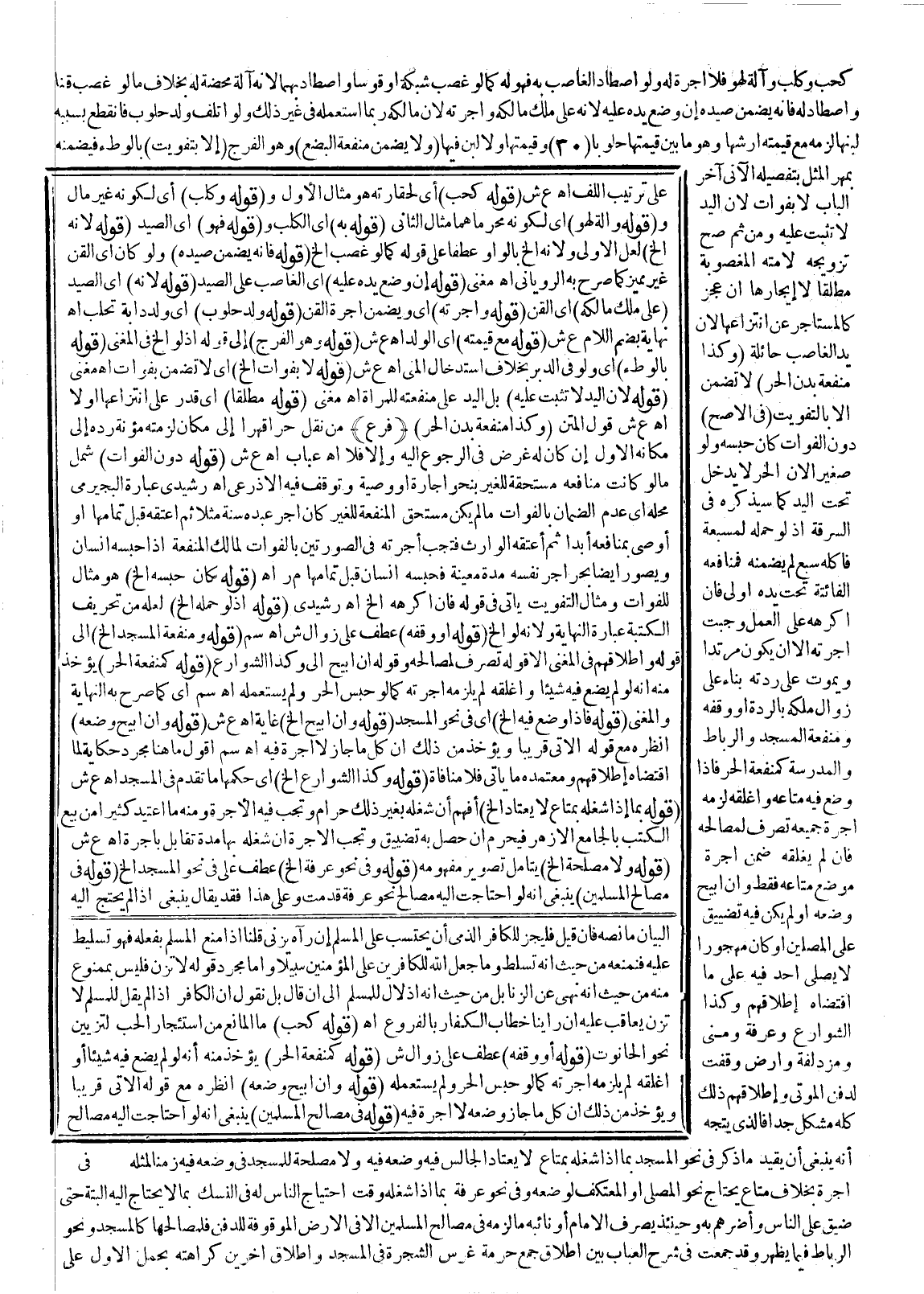 (قَوْلُهُ وَلَا مَصْلَحَةَ إلَخْ) يُتَأَمَّلُ تَصْوِيرُ مَفْهُومِهِ (قَوْلُهُ وَفِي نَحْوِ عَرَفَةَ إلَخْ) عَطْفٌ عَلَى فِي نَحْوِ الْمَسْجِدِ إلَخْ (قَوْلُهُ فِي مَصَالِحِ الْمُسْلِمِينَ) يَنْبَغِي أَنَّهُ لَوْ احْتَاجَتْ إلَيْهِ مَصَالِحُ نَحْوِ عَرَفَةَ قُدِّمَتْ وَعَلَى هَذَا فَقَدْ يُقَالُ يَنْبَغِي إذَا لَمْ يَحْتَجْ إلَيْهِ