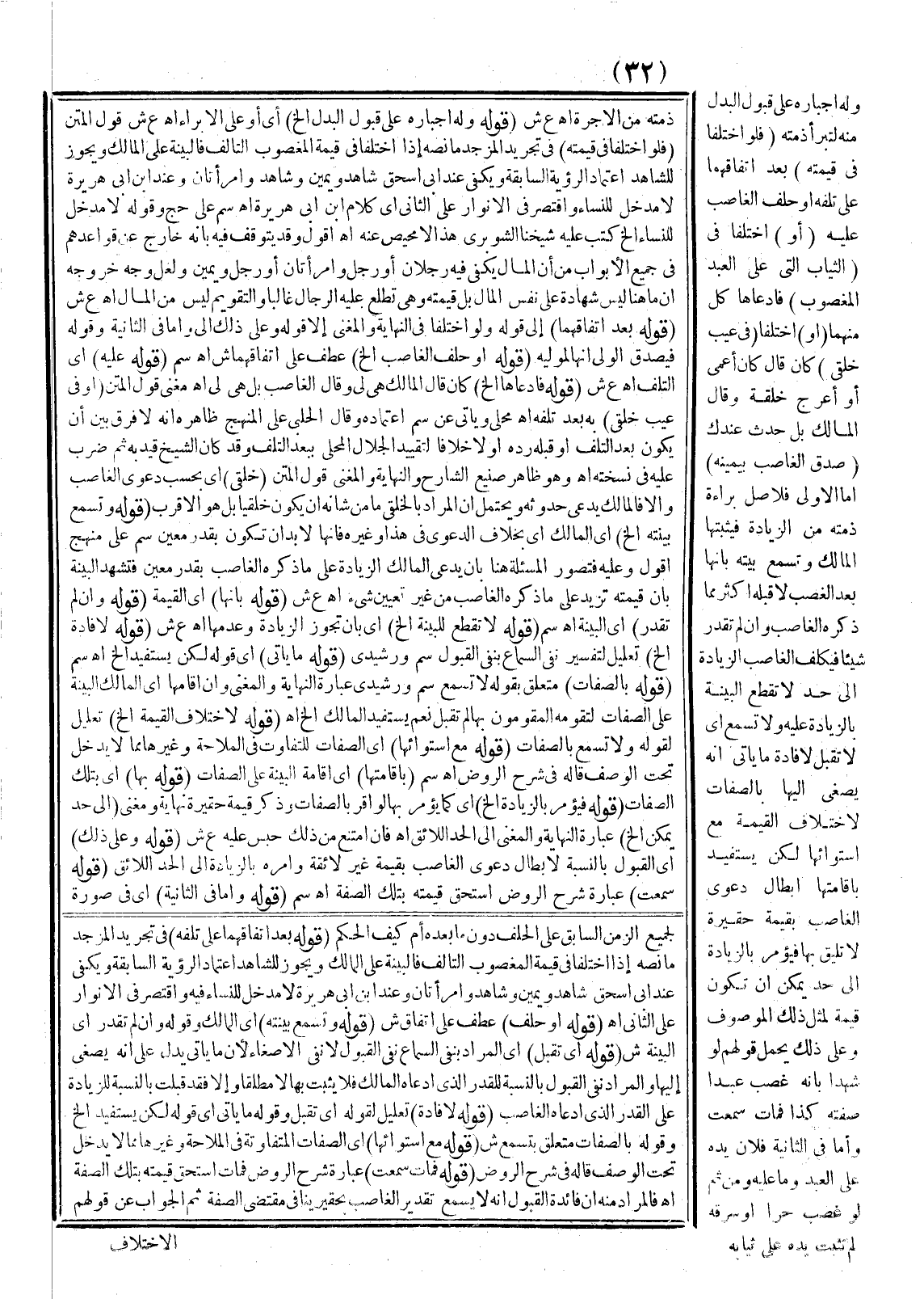 قَوْلُ الْمَتْنِ (فَلَوْ اخْتَلَفَا فِي قِيمَتِهِ) فِي تَجْرِيدِ الْمُزَجَّدِ مَا نَصُّهُ: إذَا اخْتَلَفَا فِي قِيمَةِ الْمَغْصُوبِ التَّالِفِ فَالْبَيِّنَةُ عَلَى الْمَالِكِ وَيَجُوزُ لِلشَّاهِدِ اعْتِمَادُ الرُّؤْيَةِ السَّابِقَةِ وَيَكْفِي عِنْدَ أَبِي إِسْحَاقَ شَاهِدٌ وَيَمِينٌ وَشَاهِدٌ وَامْرَأَتَانِ وَعِنْدَ ابْنِ أَبِي هُرَيْرَةَ لَا مَدْخَلَ لِلنِّسَاءِ وَاقْتَصَرَ فِي الْأَنْوَارِ عَلَى الثَّانِي أَيْ كَلَامِ ابْنِ أَبِي هُرَيْرَةَ انْتَهَى. اهـ سم عَلَى حَجّ وَقَوْلُهُ لَا مَدْخَلَ لِلنِّسَاءِ إلَخْ كَتَبَ عَلَيْهِ شَيْخُنَا الشَّوْبَرِيُّ هَذَا لَا مَحِيصَ عَنْهُ انْتَهَى أَقُولُ وَقَدْ يُتَوَقَّفُ فِيهِ بِأَنَّهُ خَارِجٌ عَنْ قَوَاعِدِهِمْ فِي جَمِيعِ الْأَبْوَابِ مِنْ أَنَّ الْمَالَ يَكْفِي فِيهِ رَجُلَانِ أَوْ رَجُلٌ وَامْرَأَتَانِ أَوْ رَجُلٌ وَيَمِينٌ وَلَعَلَّ وَجْهَ خُرُوجِهِ أَنَّ مَا هُنَا لَيْسَ شَهَادَةً عَلَى نَفْسِ الْمَالِ بَلْ عَلَى قِيمَتِهِ وَهِيَ تَطَّلِعُ عَلَيْهِ الرِّجَالُ غَالِبًا وَالتَّقْوِيمُ لَيْسَ مِنْ الْمَالِ. اهـ ع ش (قَوْلُهُ بَعْدَ اتِّفَاقِهِمَا) إلَى قَوْلِهِ وَلَوْ اخْتَلَفَا فِي النِّهَايَةِ وَالْمُغْنِي إلَّا قَوْلَهُ وَعَلَى ذَلِكَ إلَى وَأَمَّا فِي الثَّانِيَةِ وَقَوْلَهُ فَيُصَدَّقُ الْوَلِيُّ أَنَّهَا لِمُوَلِّيهِ (قَوْلُهُ أَوْ حَلَفَ الْغَاصِبُ إلَخْ) عَطْفٌ عَلَى اتِّفَاقِهِمَا ش اهـ سم (قَوْلُهُ عَلَيْهِ) أَيْ التَّلَفِ. اهـ ع ش (قَوْلُهُ فَادَّعَاهَا إلَخْ) كَأَنْ قَالَ الْمَالِكُ هِيَ لِي وَقَالَ الْغَاصِبُ بَلْ هِيَ لِي. اهـ مُغْنِي قَوْلُ الْمَتْنِ (أَوْ فِي عَيْبٍ خِلْقِيٍّ) بِهِ بَعْدَ تَلَفِهِ. اهـ مَحَلِّيٌّ وَيَأْتِي عَنْ سم اعْتِمَادُهُ وَقَالَ الْحَلَبِيُّ عَلَى الْمَنْهَجِ ظَاهِرُهُ أَنَّهُ لَا فَرْقَ بَيْنَ أَنْ يَكُونَ بَعْدَ التَّلَفِ أَوْ قَبْلَهُ رَدَّهُ أَوْ لَا، خِلَافًا لِتَقْيِيدِ الْجَلَالِ الْمَحَلِّيِّ بِبَعْدِ التَّلَفِ وَقَدْ كَانَ الشَّيْخُ قَيَّدَ بِهِ ثُمَّ ضَرَبَ عَلَيْهِ فِي نُسْخَتِهِ. اهـ وَهُوَ ظَاهِرُ صَنِيعِ الشَّارِحِ وَالنِّهَايَةِ وَالْمُغْنِي قَوْلُ الْمَتْنِ (خِلْقِيٍّ) أَيْ بِحَسَبِ دَعْوَى الْغَاصِبِ وَإِلَّا فَالْمَالِكُ يَدَّعِي حُدُوثَهُ وَيَحْتَمِلُ أَنَّ الْمُرَادَ بِالْخِلْقِيِّ مَا مِنْ شَأْنِهِ أَنْ يَكُونَ خِلْقِيًّا بَلْ هُوَ الْأَقْرَبُ