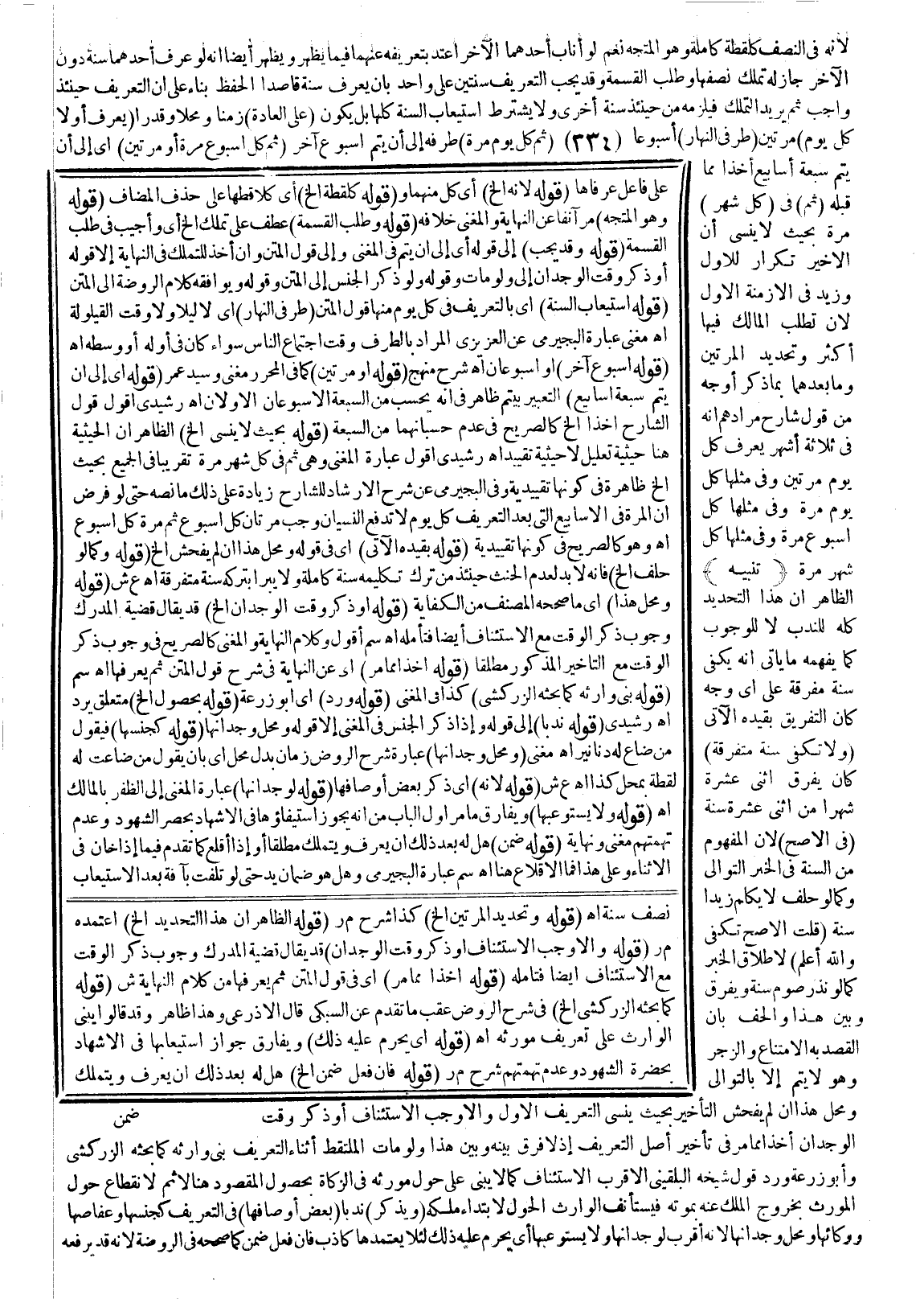 ـــــــــــــــــــــــــــــSنِصْفَ سَنَةٍ انْتَهَى (قَوْلُهُ وَتَحْدِيدُ الْمَرَّتَيْنِ إلَخْ) كَذَا شَرْحُ م ر (قَوْلُهُ الظَّاهِرُ أَنَّ هَذَا التَّحْدِيدَ إلَخْ) اعْتَمَدَهُ م ر (قَوْلُهُ وَإِلَّا وَجَبَ الِاسْتِئْنَافُ أَوْ ذِكْرُ وَقْتِ الْوِجْدَانِ) قَدْ يُقَالُ قَضِيَّةُ الْمُدْرَكِ وُجُوبُ ذِكْرِ الْوَقْتِ مَعَ الِاسْتِئْنَافِ أَيْضًا فَتَأَمَّلْهُ (قَوْلُهُ أَخْذًا مِمَّا مَرَّ) أَيْ فِي قَوْلِ الْمَتْنِ ثُمَّ يُعَرِّفُهَا مِنْ كَلَامِ النِّهَايَةِ ش (قَوْلُهُ كَمَا بَحَثَهُ الزَّرْكَشِيُّ إلَخْ) فِي شَرْحِ الرَّوْضِ عَقِبَ مَا تَقَدَّمَ عَنْ السُّبْكِيّ قَالَ الْأَذْرَعِيُّ وَهَذَا ظَاهِرٌ وَقَدْ قَالُوا يَبْنِي الْوَارِثُ عَلَى تَعْرِيفِ مُوَرِّثِهِ انْتَهَى (قَوْلُهُ أَيْ يَحْرُمُ عَلَيْهِ ذَلِكَ) وَيُفَارِقُ جَوَازَ اسْتِيعَابِهَا فِي الْإِشْهَادِ بِحَضْرَةِ الشُّهُودِ وَعَدَمِ تُهْمَتِهِمْ شَرْحُ م ر (قَوْلُهُ فَإِنْ فَعَلَ ضَمِنَ إلَخْ) هَلْ لَهُ بَعْدَ ذَلِكَ أَنْ يُعَرِّفَ وَيَتَمَلَّكَ