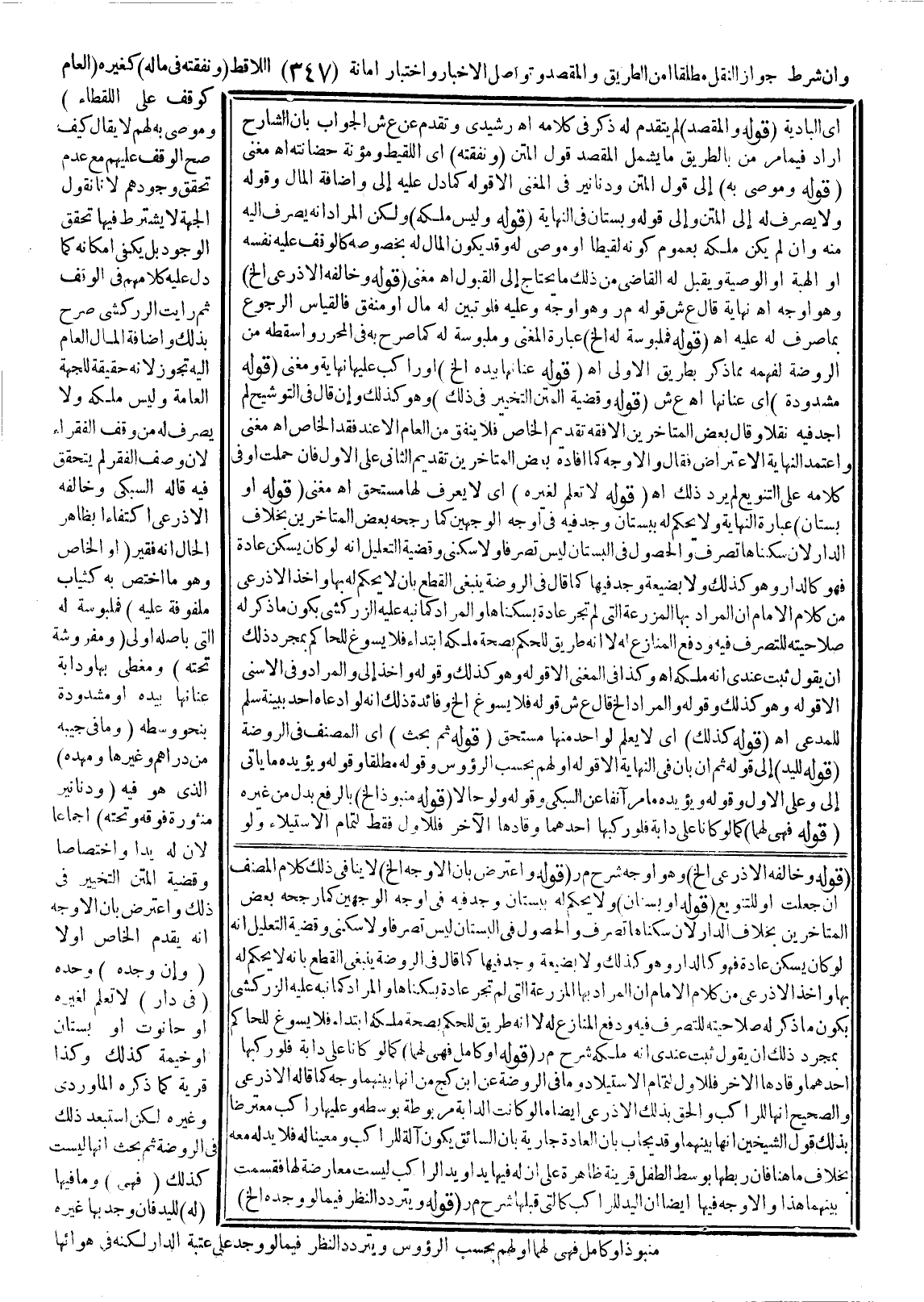 ـــــــــــــــــــــــــــــSقَوْلُهُ وَخَالَفَهُ الْأَذْرَعِيُّ إلَخْ) وَهُوَ أَوْجَهُ شَرْحُ م ر (قَوْلُهُ وَاعْتُرِضَ بِأَنَّ الْأَوْجَهَ إلَخْ) لَا يُنَافِي ذَلِكَ كَلَامَ الْمُصَنِّفِ إنْ جُعِلَتْ أَوْ لِلتَّنْوِيعِ (قَوْلُهُ أَوْ بُسْتَانٍ) وَلَا يُحْكَم لَهُ بِبُسْتَانٍ وُجِدَ فِيهِ فِي أَوْجَهِ الْوَجْهَيْنِ كَمَا رَجَّحَهُ بَعْضُ الْمُتَأَخِّرِينَ بِخِلَافِ الدَّارِ؛ لِأَنَّ سُكْنَاهَا تَصَرُّفٌ وَالْحُصُولُ فِي الْبُسْتَانِ لَيْسَ تَصَرُّفًا وَلَا سُكْنَى وَقَضِيَّةُ التَّعْلِيل أَنَّهُ لَوْ كَانَ يُسْكَنُ عَادَةً فَهُوَ كَالدَّارِ وَهُوَ كَذَلِكَ وَلَا بِضَيْعَةٍ وُجِدَ فِيهَا كَمَا قَالَ فِي الرَّوْضَةِ يَنْبَغِي الْقَطْعُ بِأَنَّهُ لَا يُحْكَمُ لَهُ بِهَا وَأَخَذَ الْأَذْرَعِيُّ مِنْ كَلَامِ الْإِمَامِ أَنَّ الْمُرَادَ بِهَا الْمَزْرَعَةُ الَّتِي لَمْ تَجْرِ عَادَةٌ بِسُكْنَاهَا وَالْمُرَادُ كَمَا نَبَّهَ عَلَيْهِ الزَّرْكَشِيُّ بِكَوْنِ مَا ذُكِرَ لَهُ صَلَاحِيَّتُهُ لِلتَّصَرُّفِ فِيهِ وَدَفْعُ الْمُنَازَعِ لَهُ؛ لِأَنَّهُ طَرِيقٌ لِلْحُكْمِ بِصِحَّةِ مِلْكِهِ ابْتِدَاءً فَلَا يُسَوَّغُ لِلْحَاكِمِ بِمُجَرَّدِ ذَلِكَ أَنْ يَقُولَ ثَبَتَ عِنْدِي أَنَّهُ مِلْكُهُ شَرْحُ م ر (قَوْلُهُ أَوْ كَامِلٌ فَهِيَ لَهُمَا) كَمَا لَوْ كَانَا عَلَى دَابَّةٍ فَلَوْ رَكِبَهَا أَحَدُهُمَا وَقَادَهَا الْآخَرُ فَلِلْأَوَّلِ لِتَمَامِ الِاسْتِيلَاءِ وَمَا فِي الرَّوْضَةِ عَنْ ابْنِ كَجٍّ مِنْ أَنَّهَا بَيْنَهُمَا وَجْهٌ كَمَا قَالَهُ الْأَذْرَعِيُّ وَالصَّحِيحُ أَنَّهَا لِلرَّاكِبِ وَأَلْحَقَ بِذَلِكَ الْأَذْرَعِيُّ أَيْضًا مَا لَوْ كَانَتْ الدَّابَّةُ مَرْبُوطَةً بِوَسَطِهِ وَعَلَيْهَا رَاكِبٌ مُعْتَرِضًا بِذَلِكَ قَوْلَ الشَّيْخَيْنِ أَنَّهَا بَيْنَهُمَا وَقَدْ يُجَابُ بِأَنَّ الْعَادَةَ جَارِيَةٌ بِأَنَّ السَّائِقَ يَكُونُ آلَةً لِلرَّاكِبِ وَمُعِينًا لَهُ فَلَا يَدَ لَهُ مَعَهُ بِخِلَافِ مَا هُنَا فَإِنَّ رَبْطَهَا بِوَسَطِ الطِّفْلِ قَرِينَةٌ ظَاهِرَةٌ عَلَى أَنَّ لَهُ فِيهَا يَدًا وَيَدُ الرَّاكِبِ لَيْسَتْ مُعَارِضَةً لَهَا فَقُسِمَتْ بَيْنَهُمَا هَذَا وَالْأَوْجَهُ فِيهَا أَيْضًا أَنَّ الْيَدَ لِلرَّاكِبِ كَاَلَّتِي قَبْلَهَا شَرْحُ م ر.