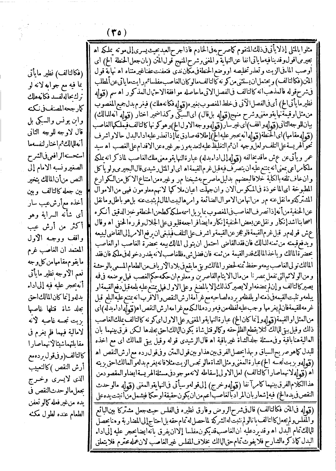 ـــــــــــــــــــــــــــــQمَثَّلُوا بِالْمِثْلِيِّ إذْ لَا يَأْتِي ذَلِكَ فِي الْمُتَقَوِّمِ كَمَا صَرَّحَ بِهِ فِي الْخَادِمِ فَإِذَا جَرَحَ الْعَبْدَ بِحَيْثُ يَسْرِي إلَى مَوْتِهِ يَمْلِكُهُ. اهـ بُجَيْرِمِيٌّ أَقُولُ وَقَدْ يُنَافِيهِ مَا يَأْتِي آنِفًا عَنْ النِّهَايَةِ وَالْمُغْنِي وَشَرْحِ الْمَنْهَجِ قَوْلُ الْمَتْنِ (بِأَنْ جَعَلَ الْحِنْطَةَ إلَخْ) أَيْ أَوْ صَبَّ الْمَاءَ فِي الزَّيْتِ وَتَعَذَّرَ تَخْلِيصُهُ أَوْ وَضَعَ الْحِنْطَةَ فِي مَكَان نَدِيٍّ فَتَعَفَّنَتْ عَفَنًا غَيْرَ مُتَنَاهٍ. اهـ نِهَايَةٌ قَوْلُ الْمَتْنِ (فَكَالتَّالِفِ) وَيَحْتَمِلُ أَنْ يُسْتَثْنَى مِنْ كَوْنِهِ كَالتَّالِفِ مَا لَوْ كَانَ الْغَاصِبُ مُفْلِسًا ثُمَّ رَأَيْت مَا يَأْتِي عَنْ الْمَطْلَبِ فِي شَرْحِ قَوْلِهِ فَالْمَذْهَبُ أَنَّهُ كَالتَّالِفِ فِي الْفَصْلِ الْآتِي مَا حَاصِلُهُ مُوَافَقَةُ الِاحْتِمَالِ الْمَذْكُورِ. اهـ سم (قَوْلُهُ نَظِيرَ مَا يَأْتِي إلَخْ) أَيْ فِي الْفَصْلِ الْآتِي فِي خَلْطِ الْمَغْصُوبِ بِغَيْرِهِ (قَوْلُهُ فَكَأَنَّهُ هَلَكَ) فَيَغْرَمُ بَدَلَ جَمِيعِ الْمَغْصُوبِ مِنْ مِثْلٍ أَوْ قِيمَةٍ نِهَايَةٌ وَمُغْنٍ وَشَرْحُ مِنْهَاجٍ (قَوْلُهُ بَلْ قَالَ) أَيْ السُّبْكِيُّ وَكَذَا ضَمِيرُ اخْتَارَ (قَوْلُهُ إنَّهُ لِلْمَالِكِ) بَيَانٌ لِلْوَجْهِ الثَّانِي