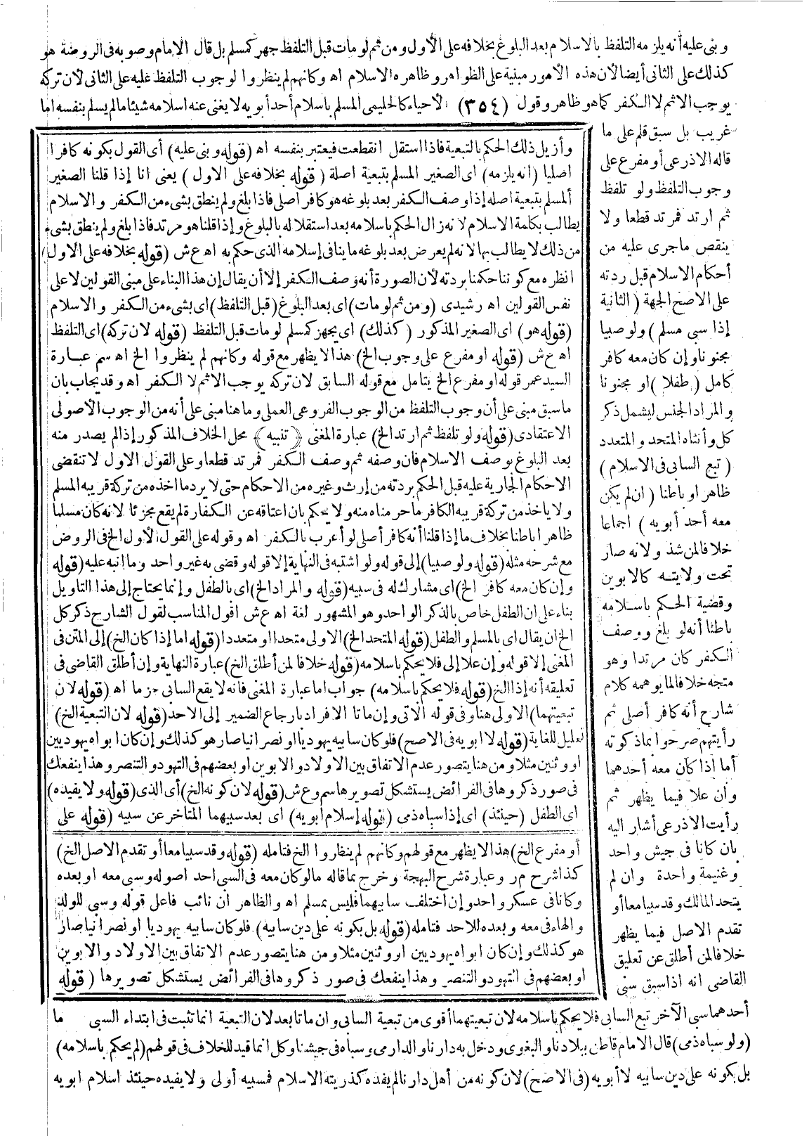 مَحَلُّ الْخِلَافِ الْمَذْكُورِ إذَا لَمْ يَصْدُرْ مِنْهُ بَعْدَ الْبُلُوغِ وَصْفُ الْإِسْلَامِ فَإِنْ وَصَفَهُ ثُمَّ وَصَفَ الْكُفْرَ فَمُرْتَدٌّ قَطْعًا وَعَلَى الْقَوْلِ الْأَوَّلِ لَا تَنْقَضِي الْأَحْكَامُ الْجَارِيَةُ عَلَيْهِ قَبْلَ الْحُكْمِ بِرِدَّتِهِ مِنْ إرْثٍ وَغَيْرِهِ مِنْ الْأَحْكَامِ حَتَّى لَا يَرُدَّ مَا أَخَذَهُ مِنْ تَرِكَةِ قَرِيبِهِ الْمُسْلِمِ وَلَا يَأْخُذَ مِنْ تَرِكَةِ قَرِيبِهِ الْكَافِرِ مَا حَرَمْنَاهُ مِنْهُ وَلَا يُحْكَمُ بِأَنَّ إعْتَاقَهُ عَنْ الْكَفَّارَةِ لَمْ يَقَعْ مُجْزِئًا؛ لِأَنَّهُ كَانَ مُسْلِمًا ظَاهِرًا وَبَاطِنًا بِخِلَافِ مَا إذَا قُلْنَا إنَّهُ كَافِرٌ أَصْلِيٌّ لَوْ أَعْرَبَ بِالْكُفْرِ اهـ وَقَوْلُهُ وَعَلَى الْقَوْلِ الْأَوَّلِ إلَخْ فِي الرَّوْضِ مَعَ شَرْحِهِ مِثْلَهُ (قَوْلُهُ وَلَوْ صَبِيًّا) إلَى قَوْلِهِ وَلَوْ اشْتَبَهَ فِي النِّهَايَةِ إلَّا قَوْلُهُ وَقَضَى بِهِ غَيْرُ وَاحِدٍ وَمَا أُنَبِّهُ عَلَيْهِ (قَوْلُهُ وَإِنْ كَانَ مَعَهُ كَافِرٌ إلَخْ) أَيْ مُشَارِكٌ لَهُ فِي سَبْيِهِ (قَوْلُهُ وَالْمُرَادُ إلَخْ) أَيْ بِالطِّفْلِ وَإِنَّمَا يُحْتَاجُ إلَى هَذَا التَّأْوِيلِ بِنَاءً عَلَى أَنَّ الطِّفْلَ خَاصٌّ بِالذَّكَرِ الْوَاحِدِ وَهُوَ الْمَشْهُورُ لُغَةً اهـ ع ش أَقُولُ: الْمُنَاسِبُ لِقَوْلِ الشَّارِحِ ذَكَرَ كُلٍّ إلَخْ أَنْ يُقَالَ أَيْ بِالْمُسْلِمِ وَالطِّفْلِ.
