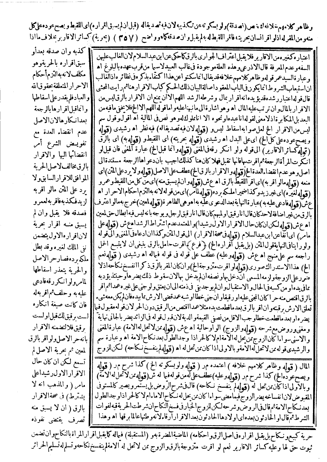 ـــــــــــــــــــــــــــــQاعْتِبَارُهُ كَغَيْرِهِ مِنْ الْأَقَارِيرِ فَلَا يَقْبَلُ اعْتِرَافَ الْجَوَارِي بِالرِّقِّ كَمَا حُكِيَ عَنْ ابْنِ عَبْدِ السَّلَامِ؛ لِأَنَّ الْغَالِبَ عَلَيْهِنَّ السَّفَهُ وَعَدَمُ الْمَعْرِفَةِ قَالَ الْأَذْرَعِيُّ وَهَذِهِ الْعِلَّةُ مَوْجُودَةٌ فِي غَالِبِ الْعَبِيدِ لَا سِيَّمَا مَنْ قَرُبَ عَهْدُهُ بِالْبُلُوغِ اهـ وَعِبَارَةُ السَّيِّدِ عُمَرَ قَوْلُهُ وَظَاهِرُ كَلَامِهِمْ خِلَافُهُ قَدْ يُقَالُ إنَّمَا سَكَتُوا عَنْ هَذَا اكْتِفَاءً بِذِكْرِهِ فِي نَظَائِرِهِ إذْ الْغَالِبُ أَنَّ اسْتِيعَابَ الشُّرُوطِ إنَّمَا يَكُونُ فِي الْبَابِ الْمَعْقُودِ أَصَالَةً لِبَيَانِ ذَلِكَ الْحُكْمِ كَبَابِ الْإِقْرَارِ هُنَا ثُمَّ رَأَيْت الْمُحَشِّي قَالَ قَوْلُهُ اعْتِبَارُ رُشْدِهِ قَدْ يُؤَيِّدُهُ أَنَّهُ إقْرَارٌ بِمَالٍ وَشَرْطُهُ الرُّشْدُ اللَّهُمَّ إلَّا أَنْ يُمْنَعَ أَنَّ الْإِقْرَارَ بِالرِّقِّ لَيْسَ مِنْ الْإِقْرَارِ بِالْمَالِ وَإِنْ تَرَتَّبَ عَلَيْهِ الْمَالُ اهـ.