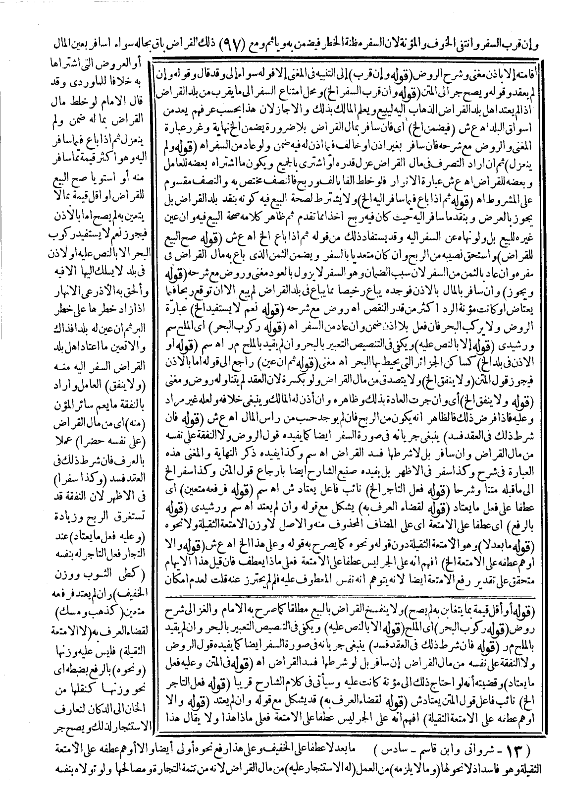 قَوْلُ الْمَتْنِ (وَلَا يُنْفِقُ إلَخْ) وَلَا يَتَصَدَّقُ مِنْ مَالِ الْقِرَاضِ، وَلَوْ بِكِسْرَةٍ؛ لِأَنَّ الْعَقْدَ لَمْ يَتَنَاوَلْهُ رَوْضٌ وَمُغْنِي (قَوْلُهُ وَلَا يُنْفِقُ إلَخْ) أَيْ، وَإِنْ جَرَتْ الْعَادَةُ بِذَلِكَ وَظَاهِرُهُ، وَإِنْ أَذِنَ لَهُ الْمَالِكُ وَيَنْبَغِي خِلَافُهُ وَلَعَلَّهُ غَيْرُ مُرَادٍ، وَعَلَيْهِ فَإِذَا فَرَضَ ذَلِكَ فَالظَّاهِرُ أَنَّهُ يَكُونُ مِنْ الرِّبْحِ فَإِنْ لَمْ يُوجَدْ حُسِبَ مِنْ رَأْسِ الْمَالِ. اهـ ع ش (قَوْلُهُ فَإِنْ شَرَطَ ذَلِكَ فِي الْعَقْدِ فَسَدَ) يَنْبَغِي جَرَيَانُهُ فِي صُورَةِ السَّفَرِ أَيْضًا كَمَا يُفِيدُهُ قَوْلُ الرَّوْضِ وَلَا النَّفَقَةُ عَلَى نَفْسِهِ مِنْ مَالِ الْقِرَاضِ، وَإِنْ سَافَرَ بَلْ لَوْ شَرَطَهَا فَسَدَ الْقِرَاضُ. انْتَهَى اهـ سم، وَكَذَا يُفِيدُهُ ذِكْرُ النِّهَايَةِ وَالْمُغْنِي هَذِهِ الْعِبَارَةَ فِي شَرْحِ وَكَذَا سَفَرٌ فِي الْأَظْهَرِ بَلْ يُفِيدُ صَنِيعُ الشَّارِحِ أَيْضًا بِإِرْجَاعِ قَوْلِ الْمَتْنِ، وَكَذَا سَفَرٌ إلَخْ إلَى مَا قَبْلَهُ مَتْنًا وَشَرْحًا (قَوْلُهُ فِعْلُ التَّاجِرِ إلَخْ) نَائِبُ فَاعِلِ يُعْتَادُ ش. اهـ سم (قَوْلُهُ فَرَفْعُهُ مُتَعَيَّنٌ) أَيْ عَطْفًا عَلَى فِعْلِ مَا يُعْتَادُ (قَوْلُهُ لِقَضَاءِ الْعُرْفِ بِهِ) يَشْكُلُ مَعَ قَوْلِهِ وَإِنْ لَمْ يُعْتَدْ. اهـ سم وَرَشِيدِيٌّ (قَوْلُهُ بِالرَّفْعِ) أَيْ عَطْفًا عَلَى الْأَمْتِعَةِ أَيْ عَلَى الْمُضَافِ الْمَحْذُوفِ مِنْهُ وَالْأَصْلُ لَا وَزْنُ الْأَمْتِعَةِ الثَّقِيلَةِ وَلَا نَحْوِهِ.