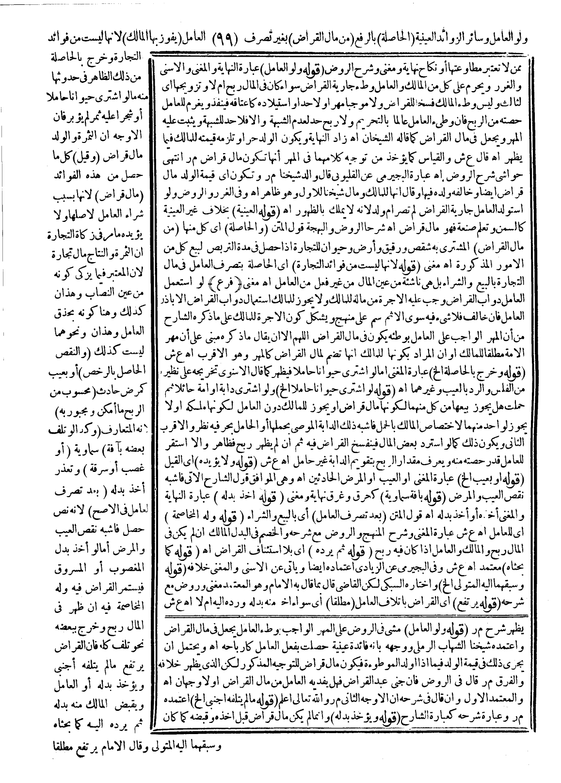 (فَرْعٌ) لَوْ اسْتَعْمَلَ الْعَامِلُ دَوَابَّ الْقِرَاضِ وَجَبَ عَلَيْهِ الْأُجْرَةُ مِنْ مَالِهِ لِلْمَالِكِ وَلَا يَجُوزُ لِلْمَالِكِ اسْتِعْمَالُ دَوَابِّ الْقِرَاضِ إلَّا بِإِذْنِ الْعَامِلِ فَإِنْ خَالَفَ فَلَا شَيْءَ فِيهِ سِوَى الْإِثْمِ سم عَلَى مَنْهَجٍ وَيُشْكِلُ كَوْنُ الْأُجْرَةِ لِلْمَالِكِ عَلَى مَا ذَكَرَهُ الشَّارِحُ مِنْ أَنَّ الْمَهْرَ الْوَاجِبَ عَلَى الْعَامِلِ بِوَطْئِهِ يَكُونُ فِي مَالِ الْقِرَاضِ، اللَّهُمَّ إلَّا أَنْ يُقَالَ مَا ذَكَرَهُ مَبْنِيٌّ عَلَى أَنَّ مَهْرَ الْأَمَةِ مُطْلَقًا لِلْمَالِكِ أَوْ أَنَّ الْمُرَادَ بِكَوْنِهَا لِلْمَالِكِ أَنَّهَا تُضَمُّ لِمَالِ الْقِرَاضِ كَالْمَهْرِ وَهُوَ الْأَقْرَبُ. اهـ ع ش (قَوْلُهُ وَخَرَجَ بِالْحَاصِلَةِ إلَخْ) عِبَارَةُ الْمُغْنِي أَمَّا لَوْ اشْتَرَى حَيَوَانًا حَامِلًا فَيَظْهَرُ كَمَا قَالَ الْإِسْنَوِيُّ تَخْرِيجُهُ عَلَى نَظِيرِهِ مِنْ الْفَلَسِ وَالرَّدِّ بِالْعَيْبِ وَغَيْرِهِمَا. اهـ.